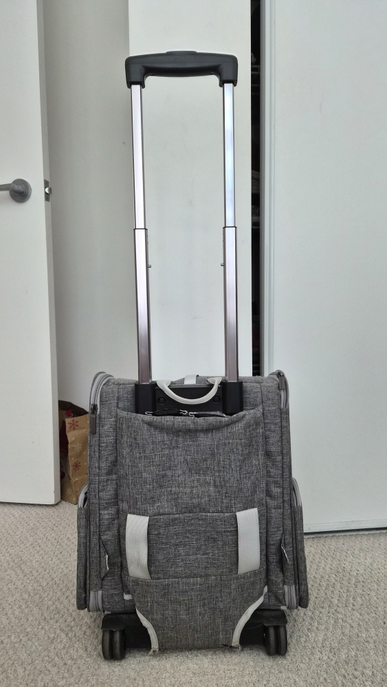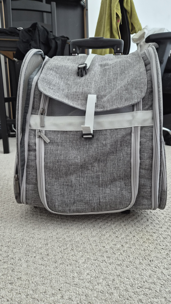 Selling a pet carrier with wheels in a nice grey colour! It's in great shape and ready for your furry friend's next adventure. Perfect for travel or vet visits.