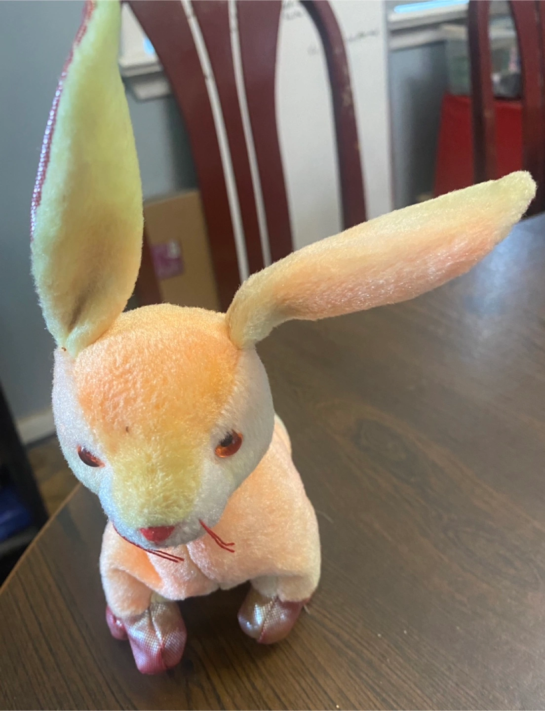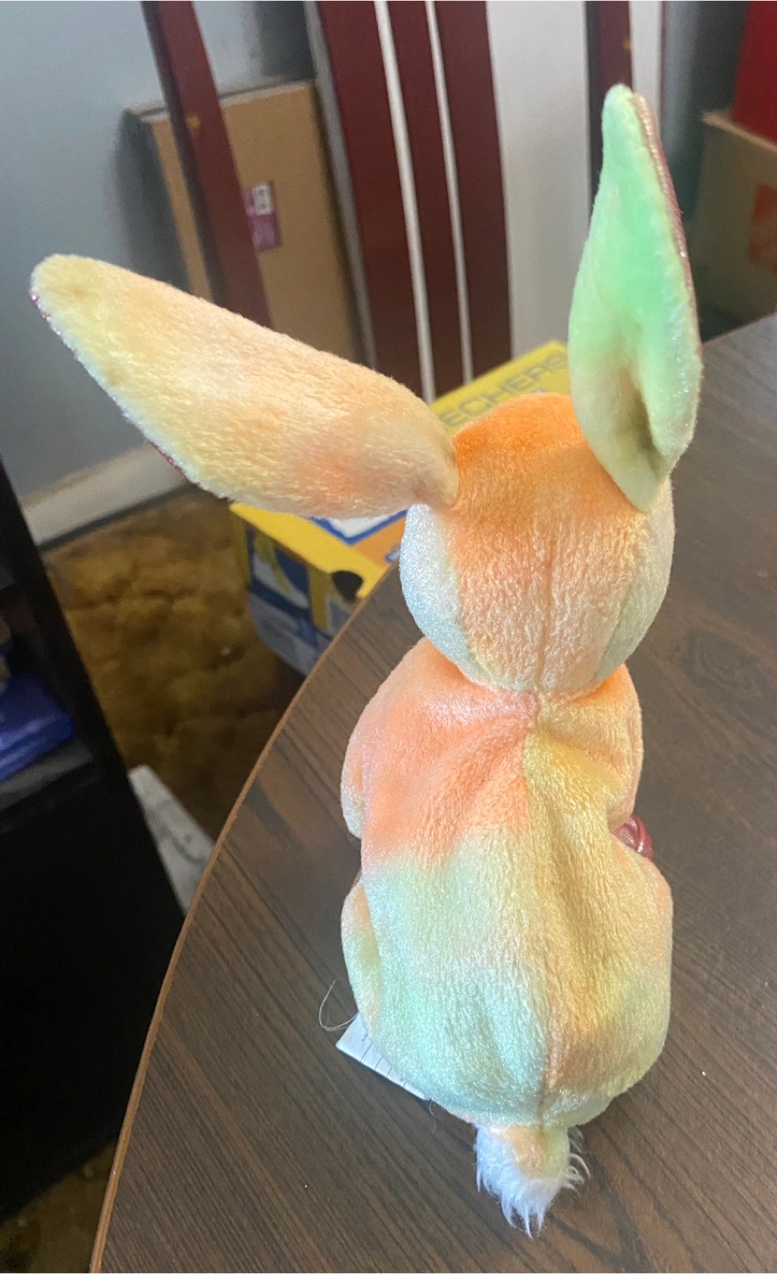 This vintageTy Rabbit™ brand plush toy brings a touch of nostalgia with its soft, pastel hues and distinctive long ears. Being a handmade item from China, it possesses a unique charm that sets it apart. This used item has lots of life left. It would look adorable in any room. If the ad is live, it's available—no need to ask! This little bunny is hopping to find a new home. It's priced to sell at $15 CAD.