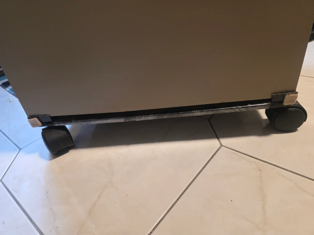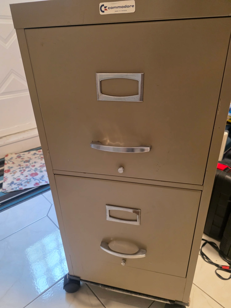 Here's a Commodore filing cabinet. It has two drawers and is on wheels for easy moving. Perfect for your home office!
