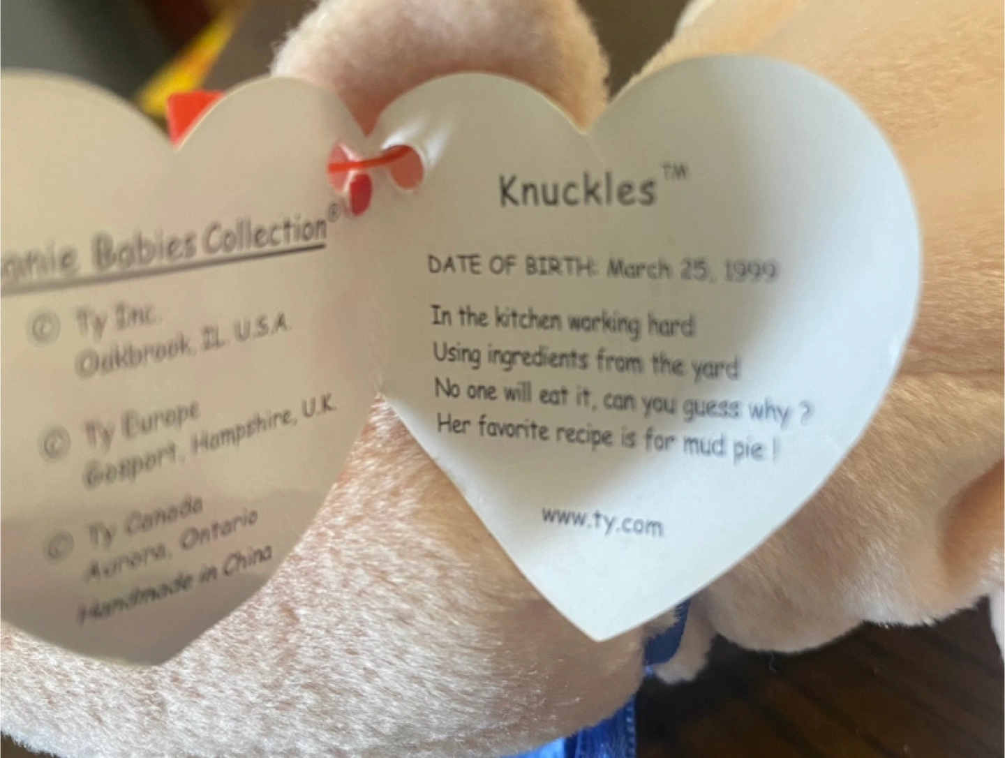 Selling a Ty Beanie Baby named Knuckles the Pig! This adorable plush toy is part of the Beanie Babies Collection and has a date of birth of March 25, 1999