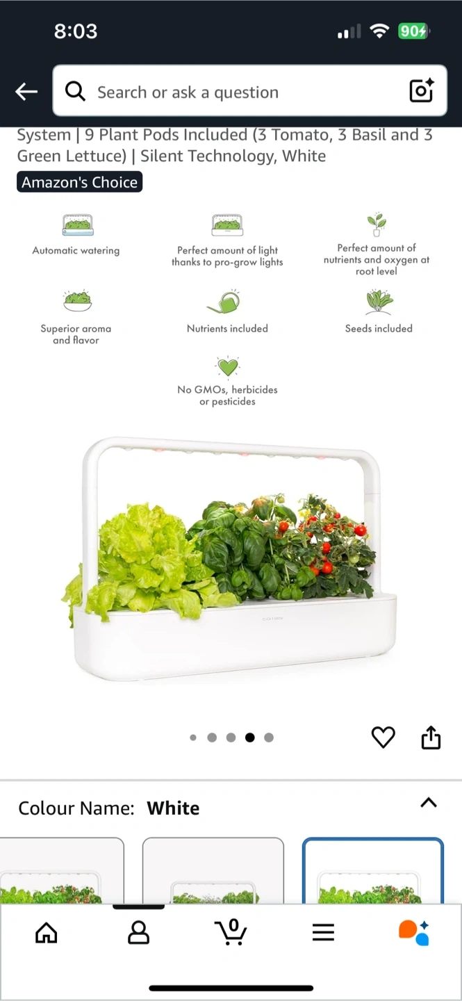 Grow fresh herbs, vegetables, salad greens, flowers and more in this Click & Grow Smart Garden 9 White indoor garden! This self-watering garden has a silent technology and includes 9 plant pods.