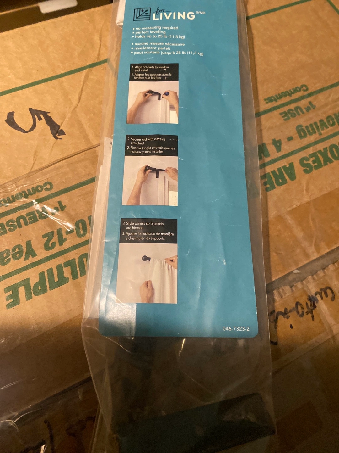 Selling a Living cafe rod! 18-48” 45.7-122cm; dual. 3/4” (1.9 cm) - Perfect leveling - Holds up to 25 lb (11.3 kg) It's easy to install and secure rod. Black smooth finish. Moving Sale Pick up only