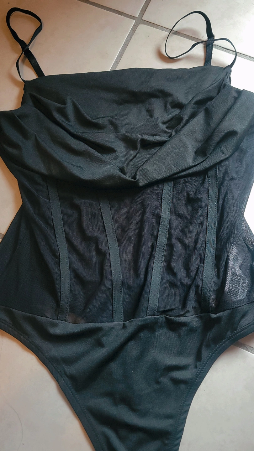 Selling a brand new Forever 21 black bodysuit in size M. It still has the tags on! Originally bought for $16.00. The material feels nice and it's a stylish piece to add to your wardrobe