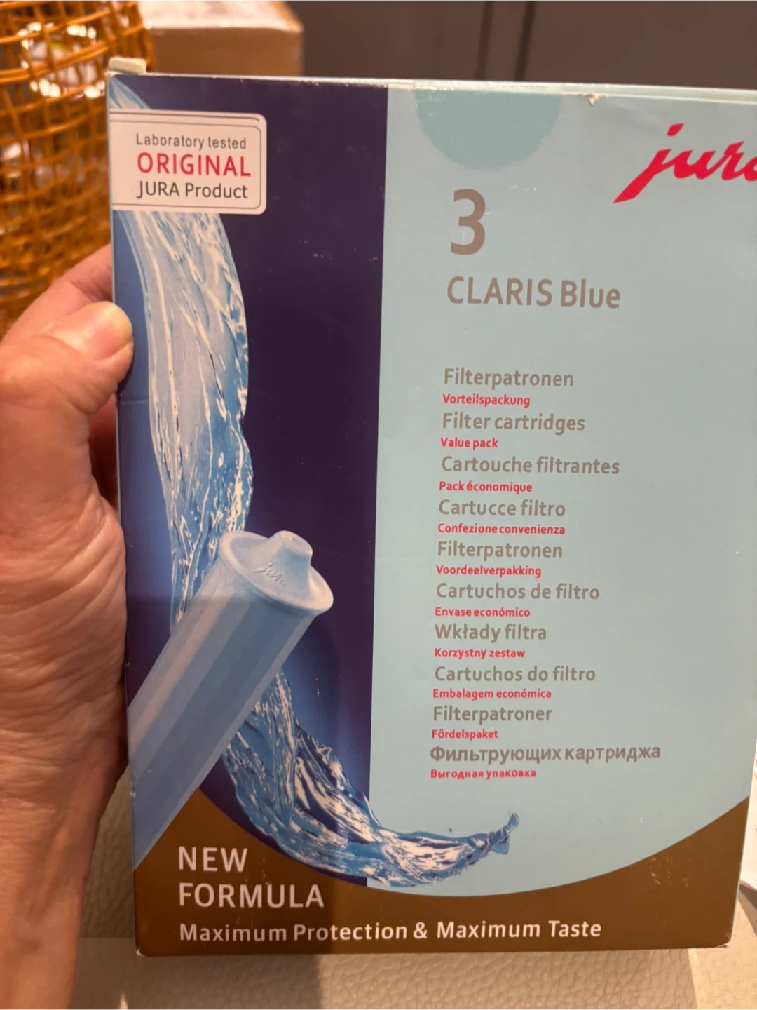 Selling a pack of 3 Jura Claris Blue water filters. These filters feature a new formula for maximum protection and taste. They are designed to be used with Jura coffee machines to ensure the best water quality for your coffee