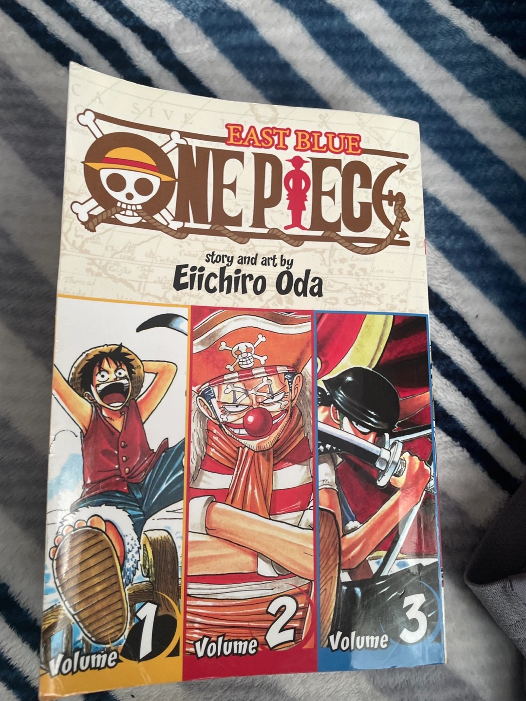 Selling One Piece: East Blue, which contains volumes 1, 2, and 3 of the One Piece manga series! It's a great collection to get started with this amazing series by Eiichiro Oda! Originally retailed for $14.99 USD