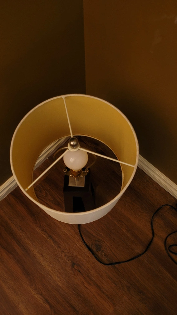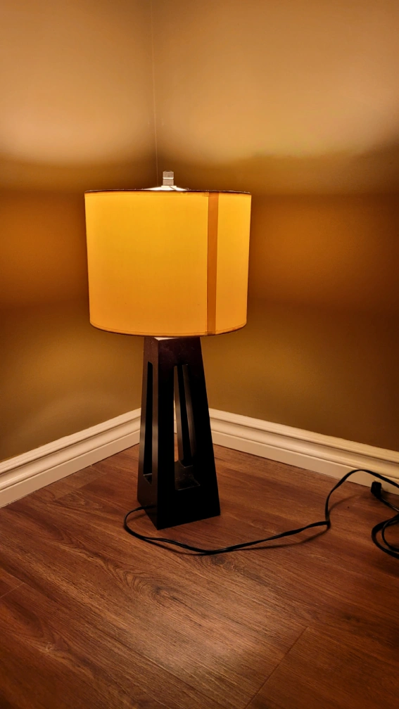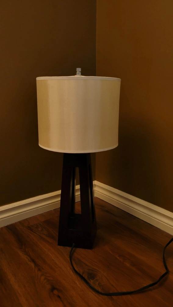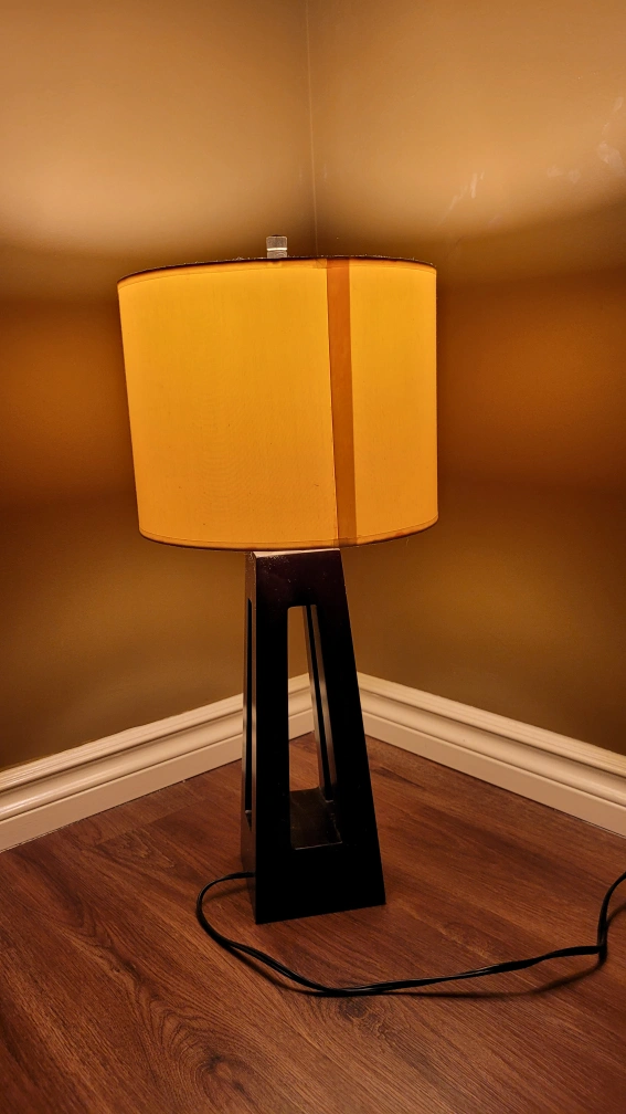 365Selling a table lamp that would look great in any living room or bedroom! It features a dark wood stand and a light-coloured shade. It's in good condition and provides a warm, ambient light