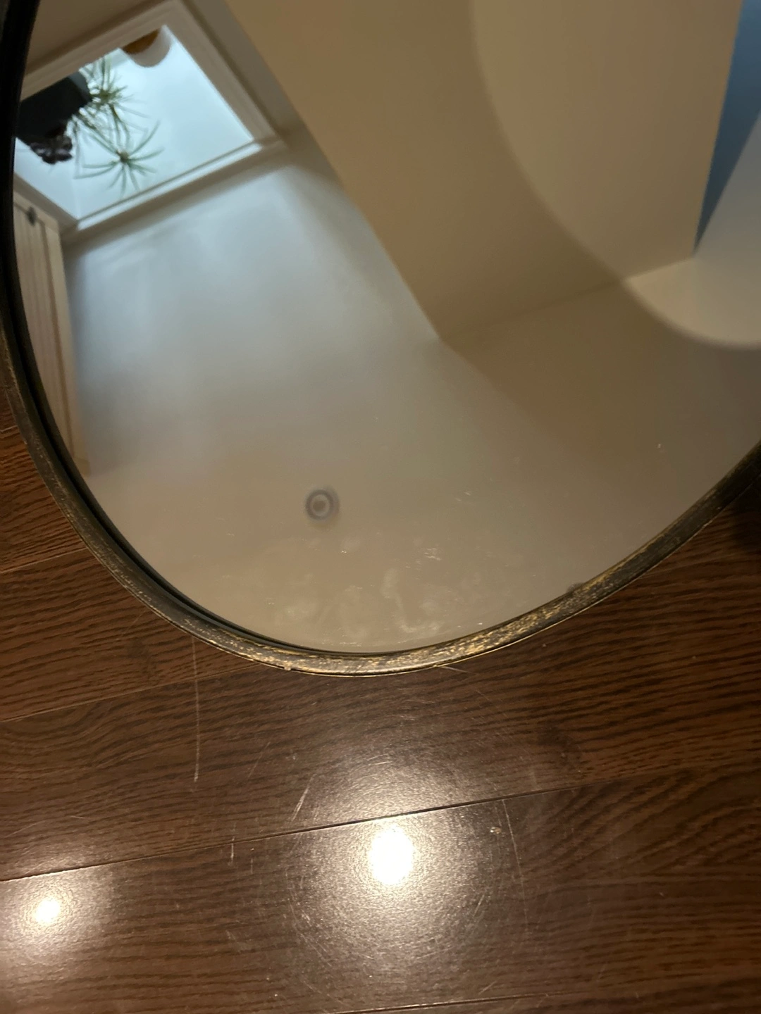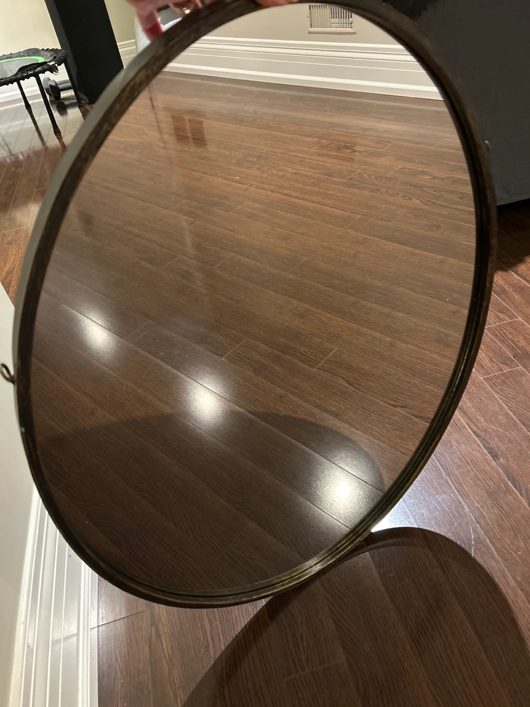 Selling an oval wall mirror. Distressed golden brown frame. The instructions for hanging are included on the back.