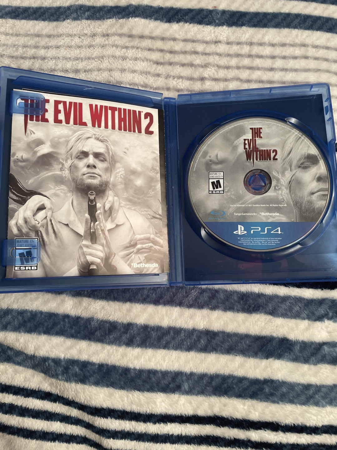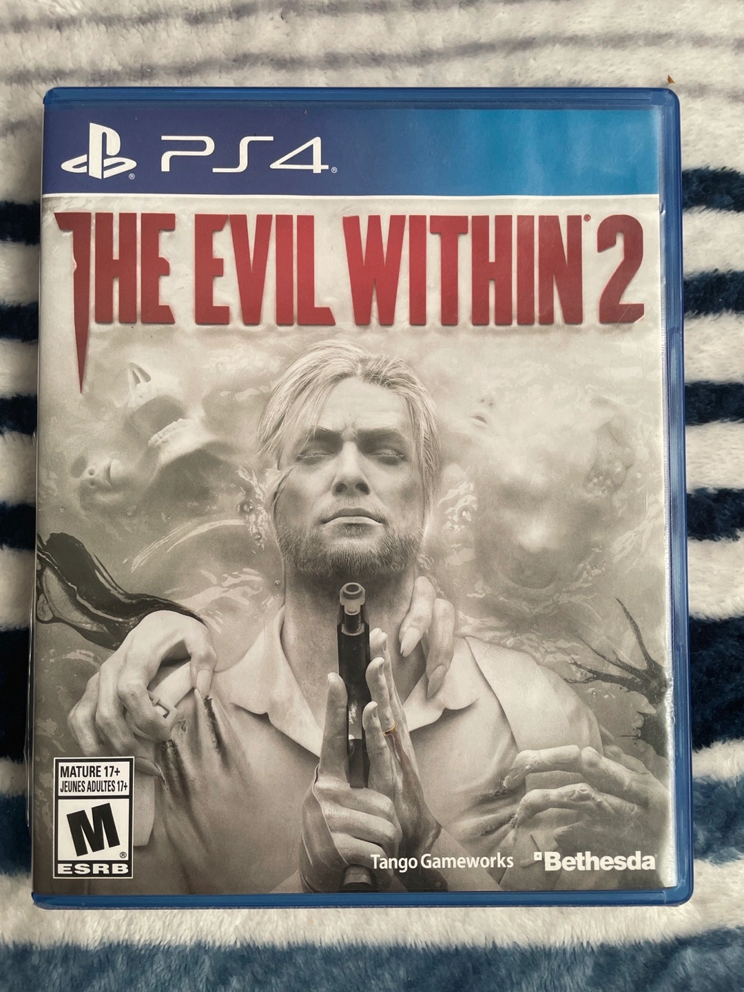 Selling The Evil Within 2 for the PS4. It's a great horror game from Bethesda and Tango Gameworks. The game is rated Mature 17+ by ESRB.