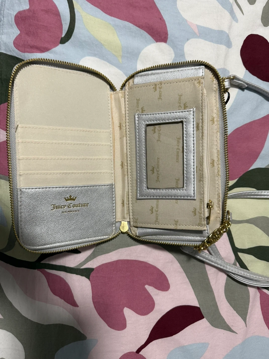 This is a silver vintage Y2K juicy couture crossbody wallet purse. Has plenty of pockets to keep all your cards and money in. It’s in mint condition.