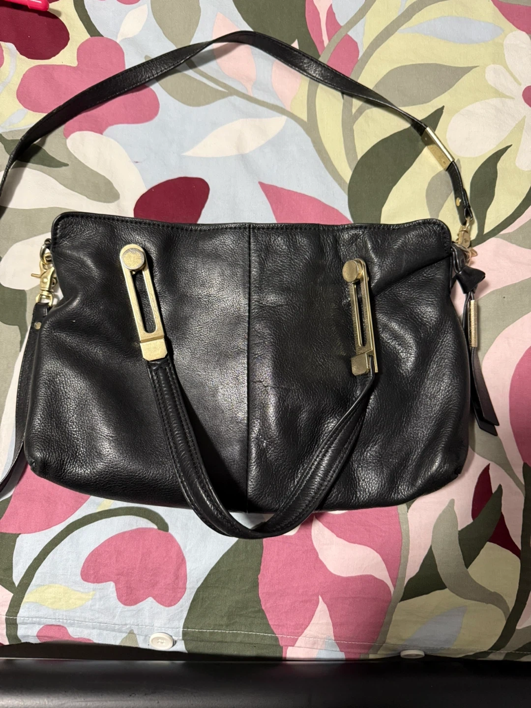 This is a gently used Foley + Corinna black leather handbag. It's in great condition and ready for a new home! Perfect for everyday use or a night out. Very clean inside and out. Dimensions are 29cm wide x 21cm tall