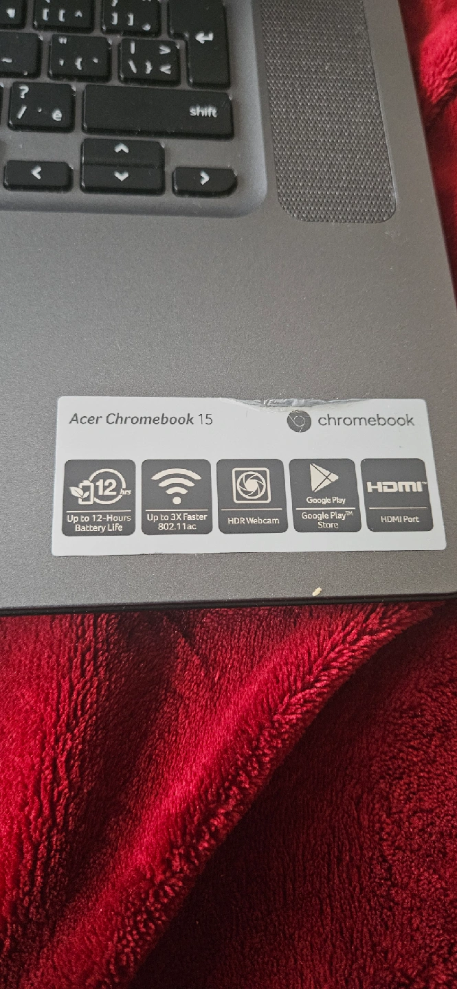 Selling an Acer Chromebook 15! It features up to 12 hours of battery life, supports up to 3x faster 802.11ac, and has an HDR webcam. It also has Google Play and an HDMI port.