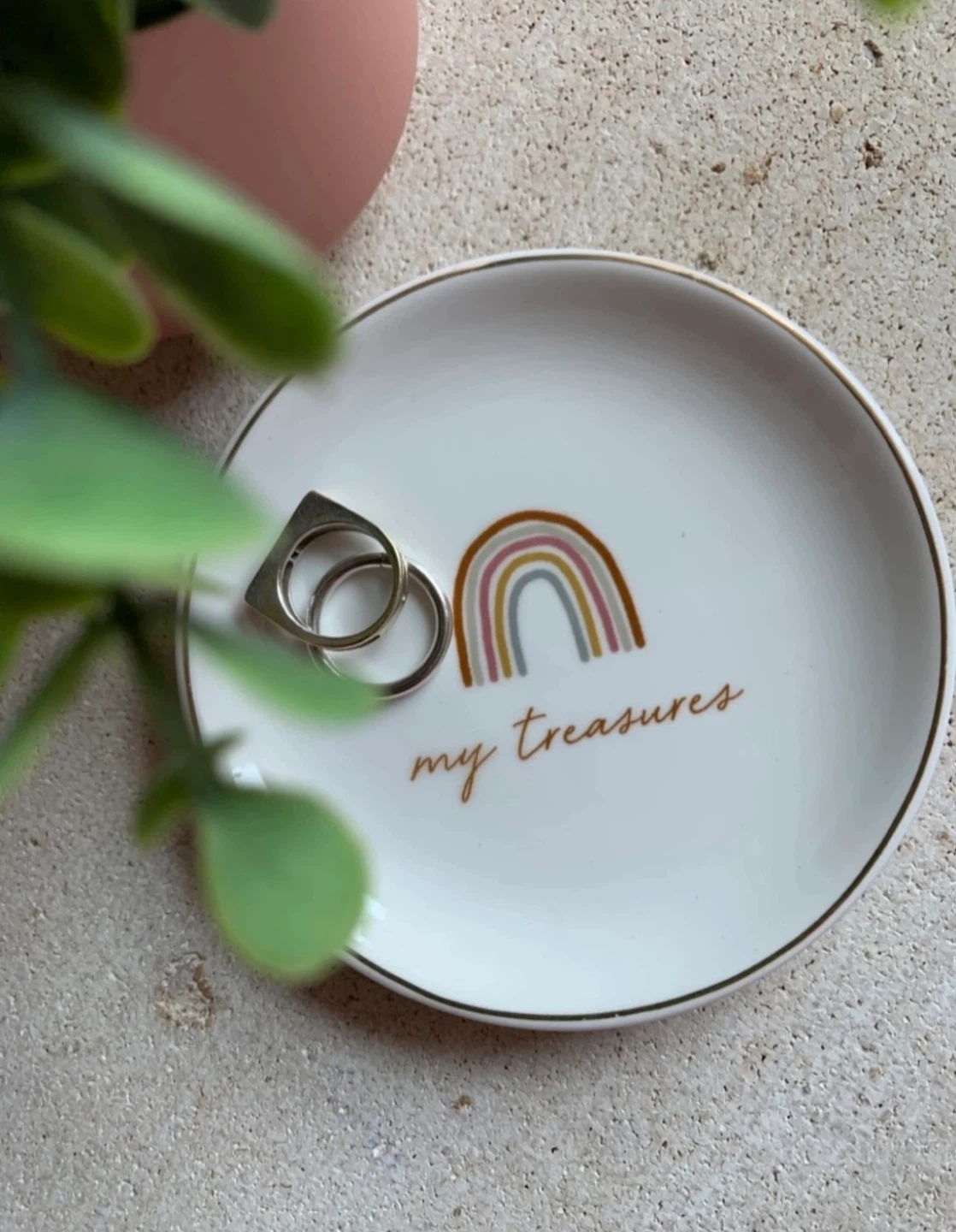 👉🏻Cash & Pickup Only Please 👉🏻Near Queen St West and Niagara St 👉🏻 Bundle for a discount! This adorable rainbow-themed trinket dish, labeled "my treasures," is just the spot for your rings, earrings, or tiny treasures! Jewelry not included😊 •Smoke/pet free home•