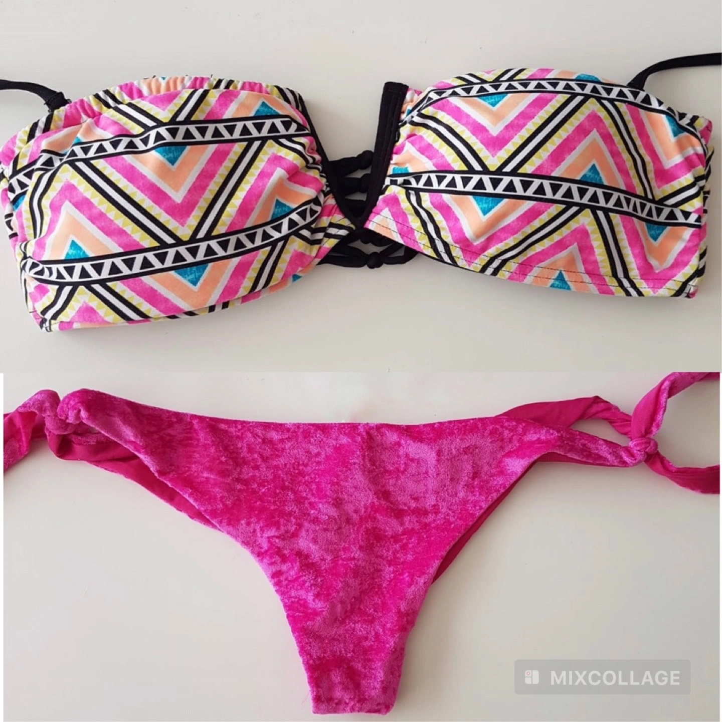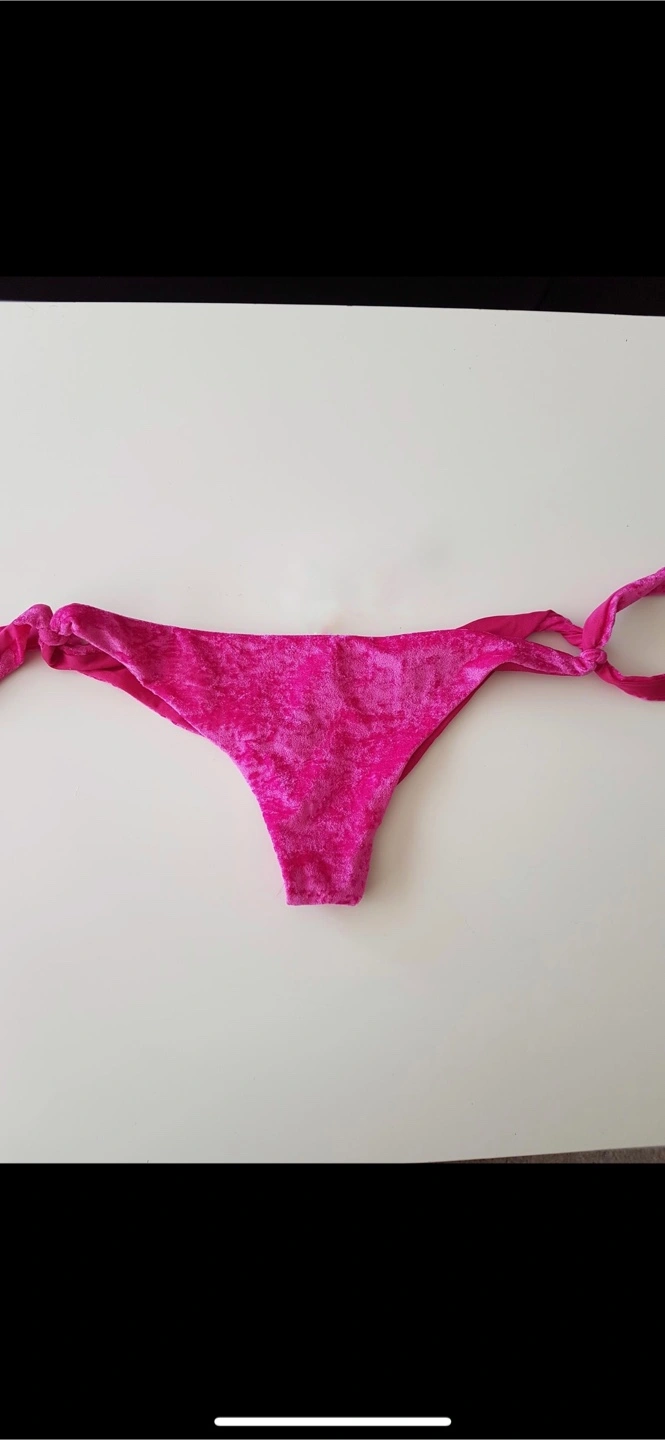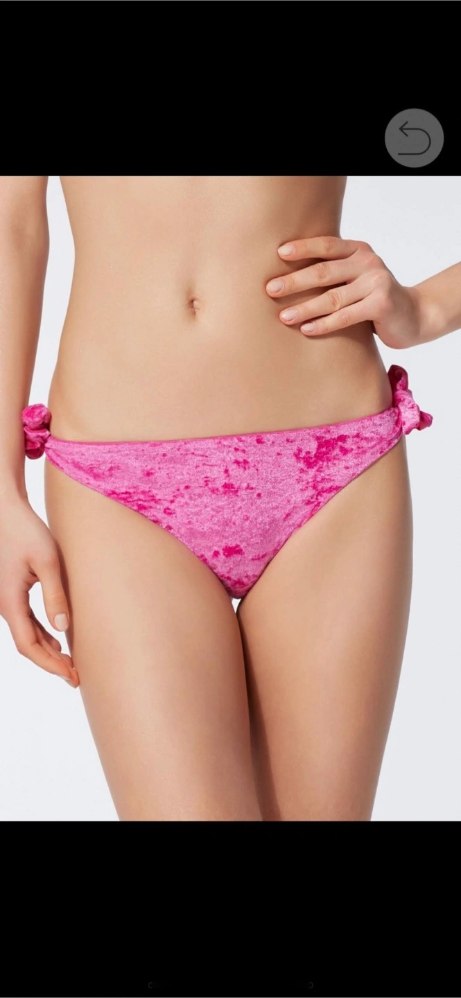 The bottom is S new without tags but never ever worn velour fabric Calzedonia brand, the top fits S-M worn just get times perfect condition. Different brands but goes nicely together.