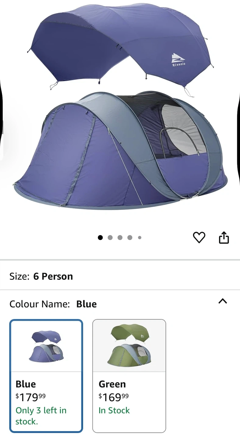 This Rivenlo pop-up tent is perfect for your next camping trip! It comfortably fits 6 people and offers complete weather protection.