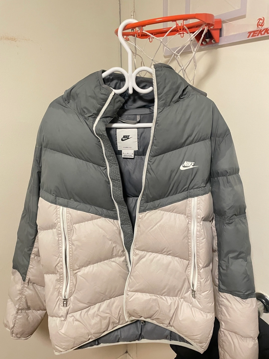 Selling a stylish Nike puffer jacket in a lovely grey and white colour combination! It's perfect for staying warm and cozy during those chilly Canadian days. It's in great condition and ready for a new home!
