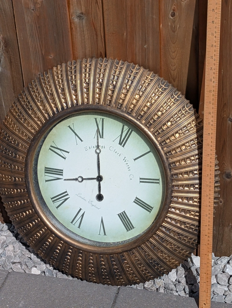 Selling a beautiful wall clock from Edinburgh Clock Works Co. It has a lovely vintage look and would look great in any room. The clock face features Roman numerals and the frame has a decorative design. In great condition. Dimensions roughly 24x24 inches Pickup in Markham 16th Ave and BurOak