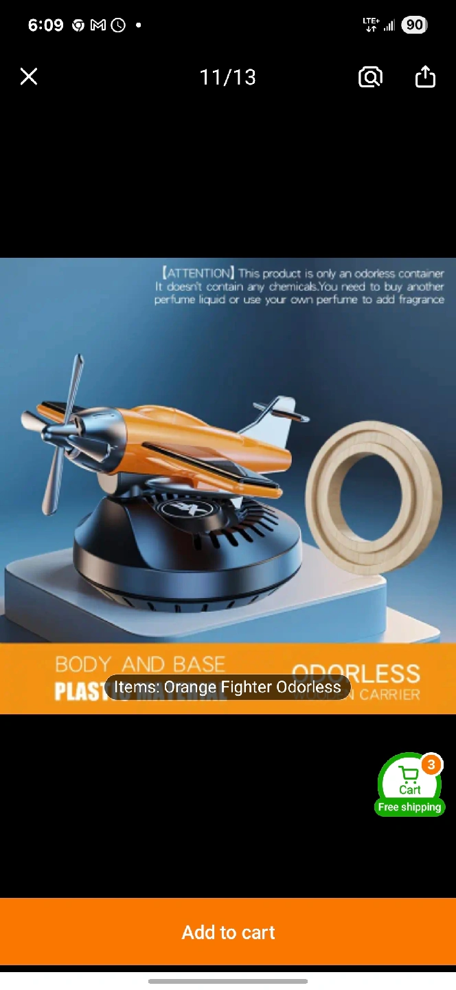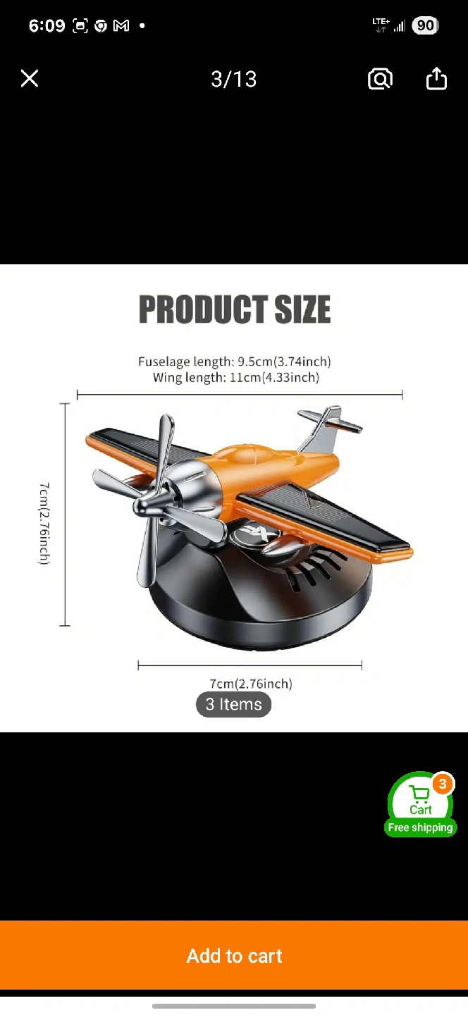 Add a touch of aviation flair to your car with this airplane-shaped air freshener! It features solar rotating fan blades to evenly spread fragrance. The fuselage length is 9.5cm (3.74 inch) and the wing length is 11cm (4.33 inch). It's an odorless container, so you can add your own perfume or fragrance liquid. Waiting for absorption and recycling!