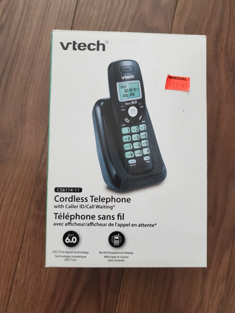 Selling a brand new VTech CS6114-11 Cordless Telephone with Caller ID and Call Waiting. It's still in the original box and has never been used! Features DECT 6.0 digital technology and a backlit keypad and display. Originally priced at $27.99.
