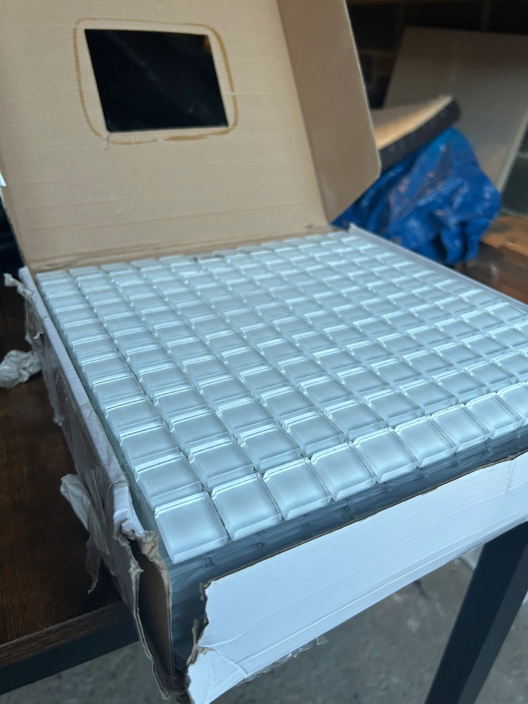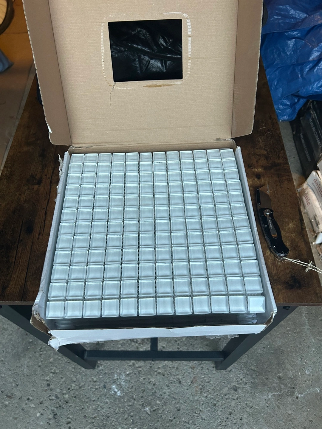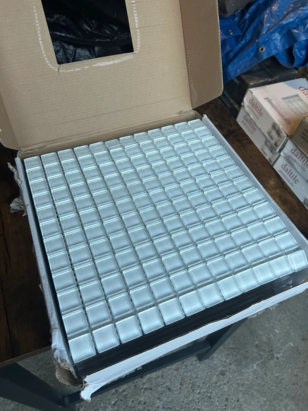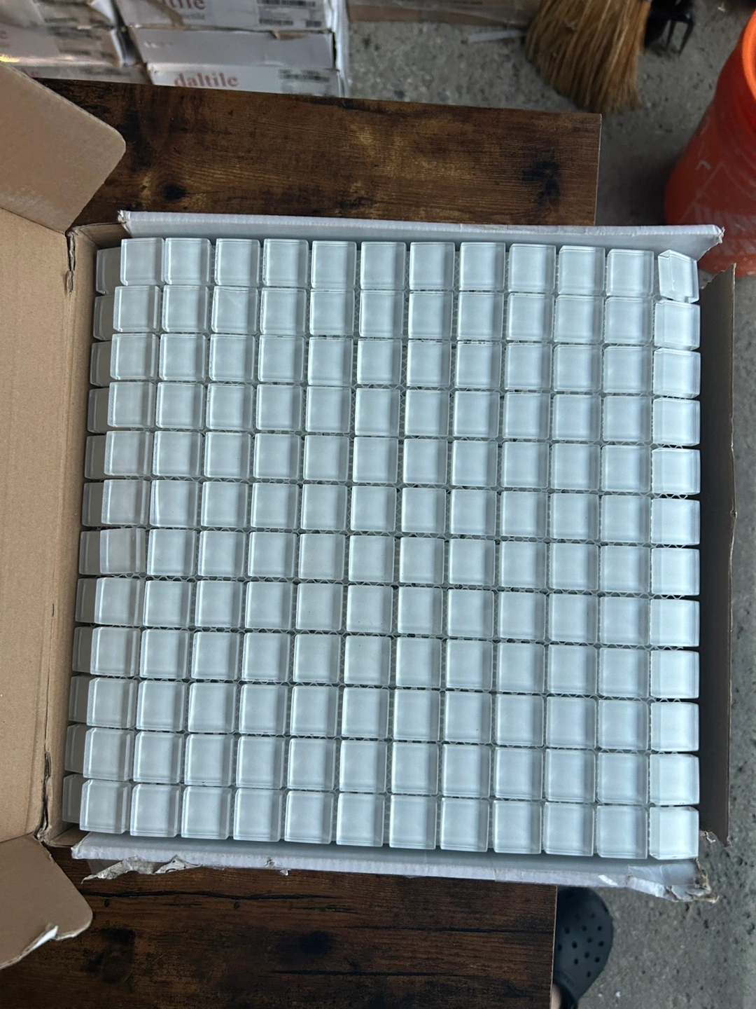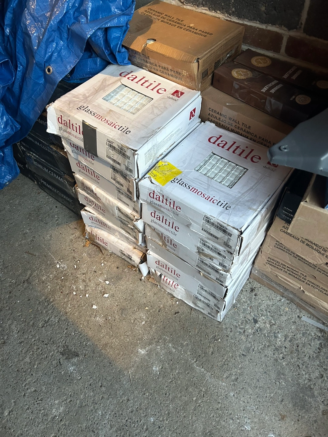I'm selling 13 boxes of Daltile glass mosaic tile. It's brand new and still in the original packaging. Perfect for adding a touch of elegance to any space!