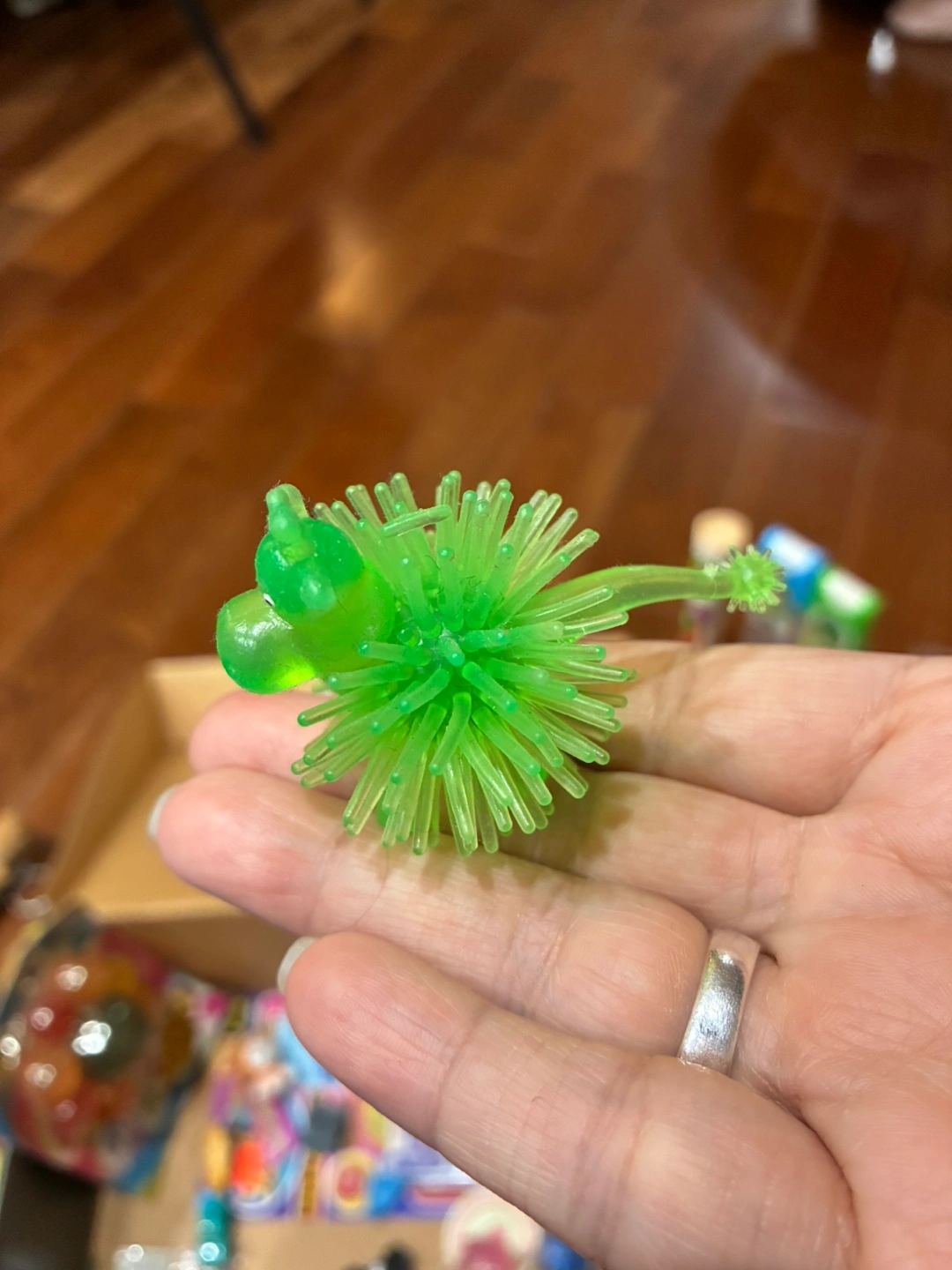 Have a green puffer toy that has a cow head, feet, tail, and a handle on its back to attach to bags, backpacks, key rings : ) π Harbord & Major St πͺ Pick-up only