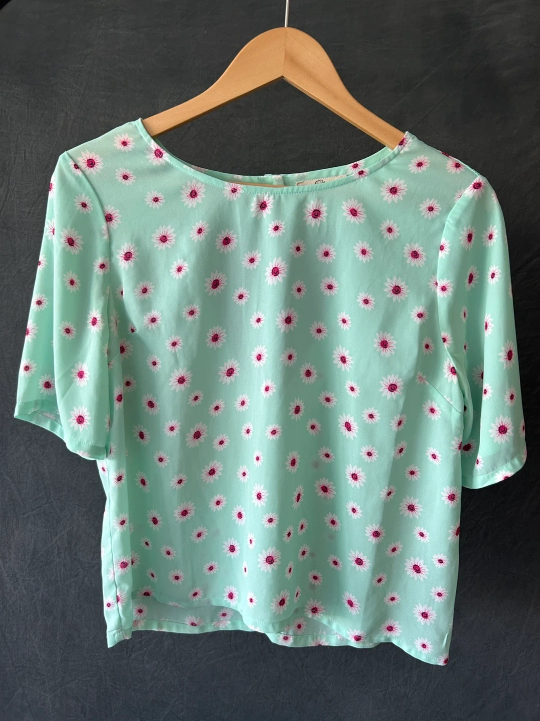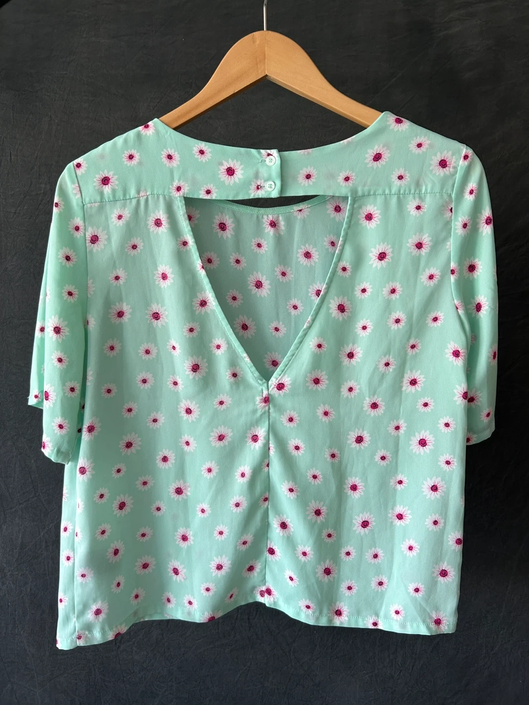 Selling an Elodie blouse with a floral print! It's a size large and features a cute cutout design on the back. The material is lightweight. It's in like new condition!