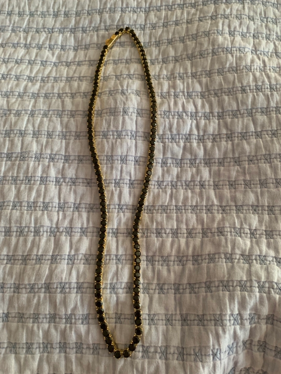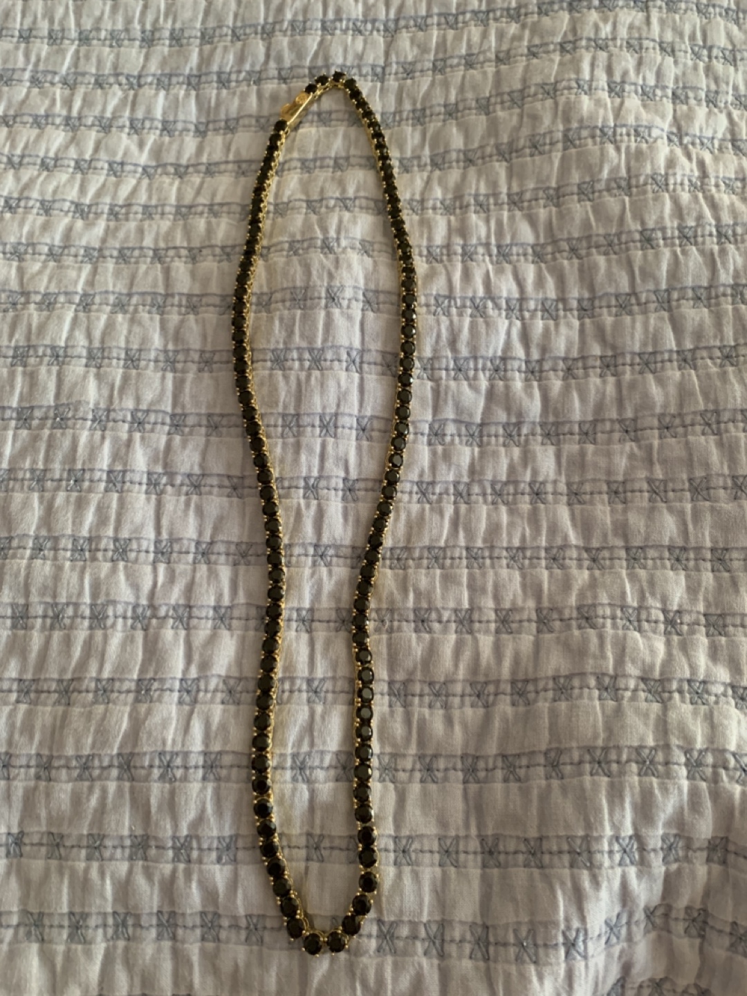 Selling a King Ice tennis chain featuring black stones. It’s in great condition and ready to add some sparkle to your outfit!