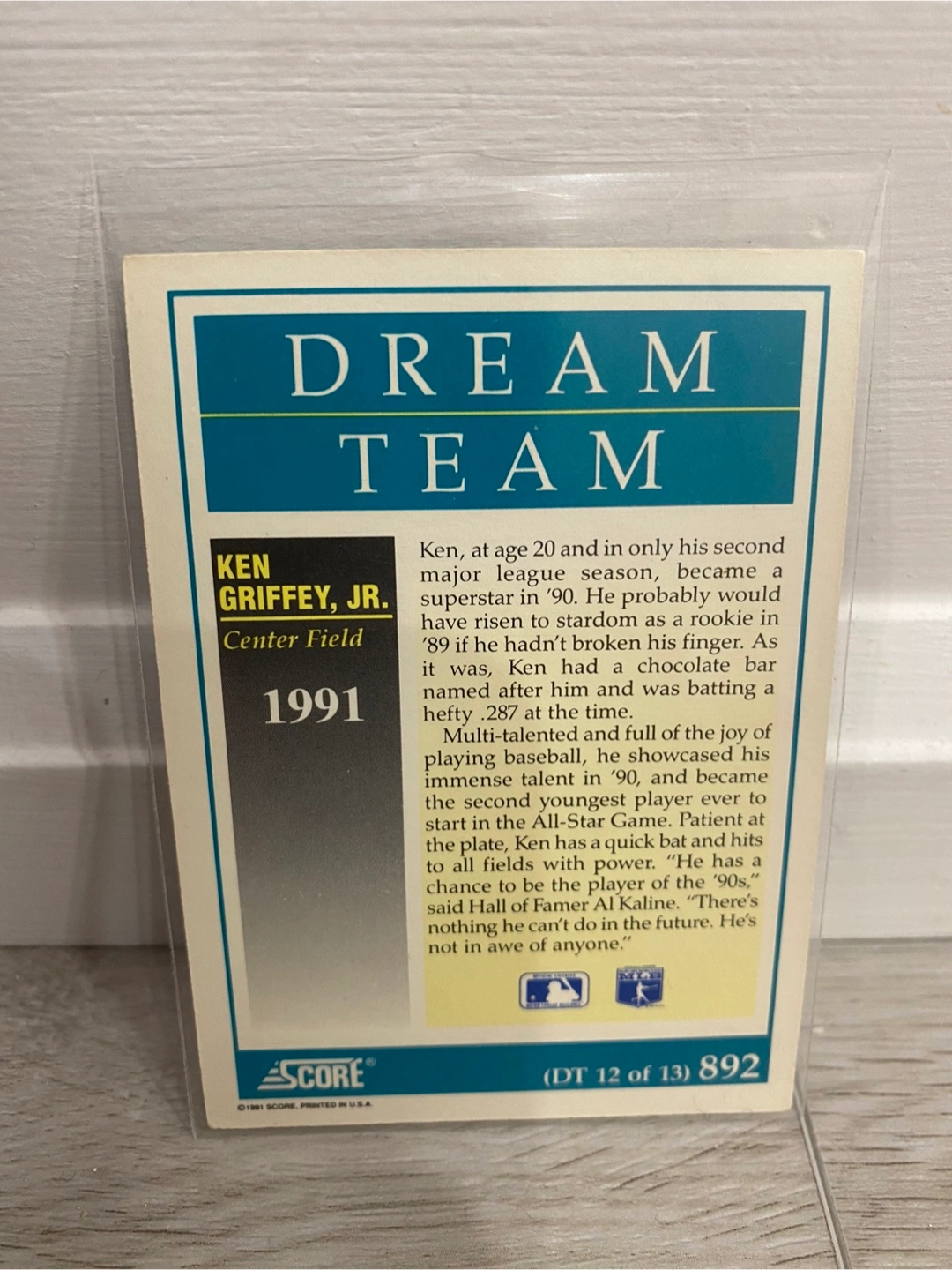 Selling a Ken Griffey Jr. baseball card from the 1991 Score Dream Team series. It's in great condition and features a classic image of Griffey!