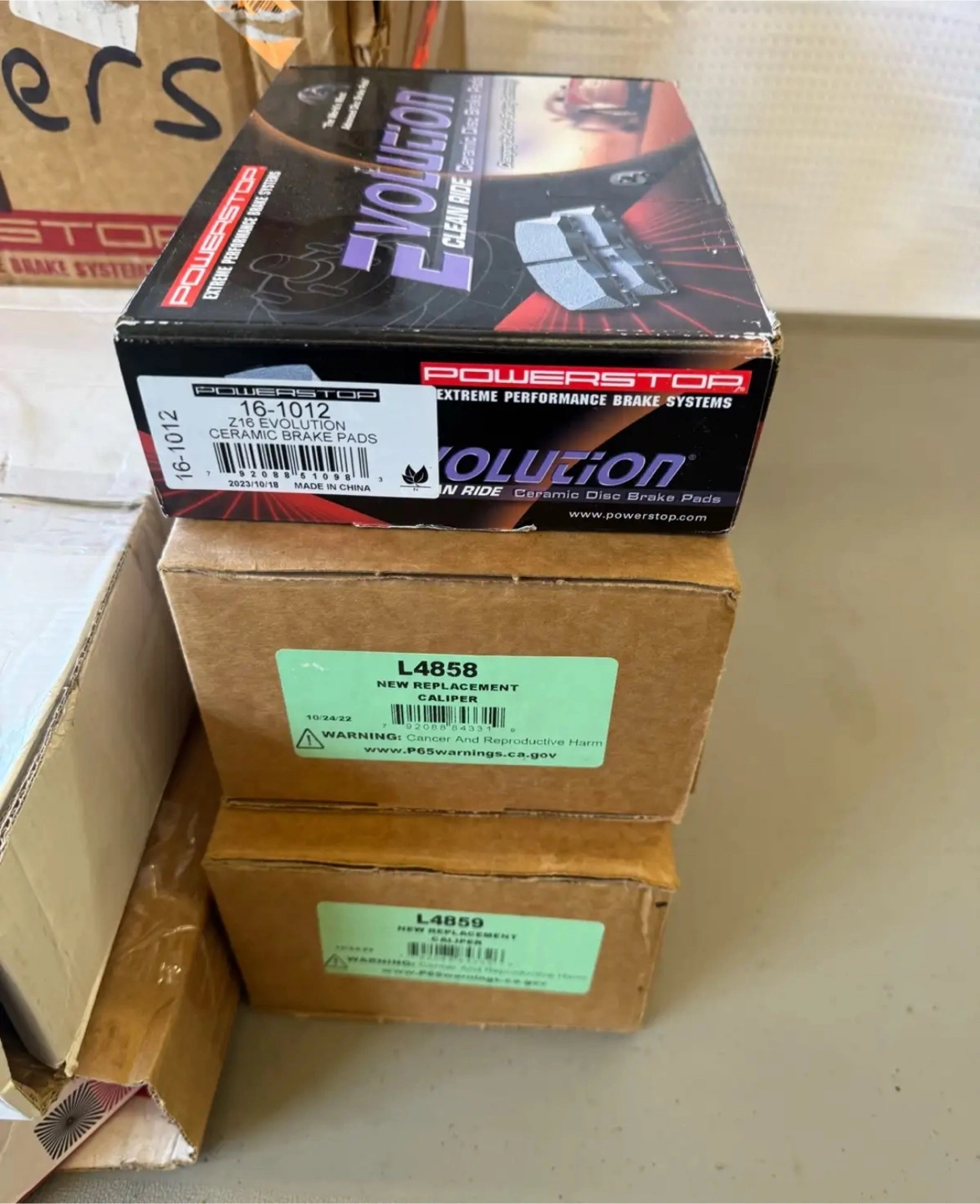 43Power Stop KCOE4556 - Autospecialty 1-Click Daily Driver Rear Brake Kit Included Brake Pads, Rotors and Calipers Fits: 2004-2011 Ford F-150 2006-2008 Lincoln Mark LT Retail Amazon: Sold Out Tdot: $637.01 on sale $530.84 + tax Asking: $300 Brand new in box and packaging Opened for photos One rotor box torn Pick Up Waterdown Area