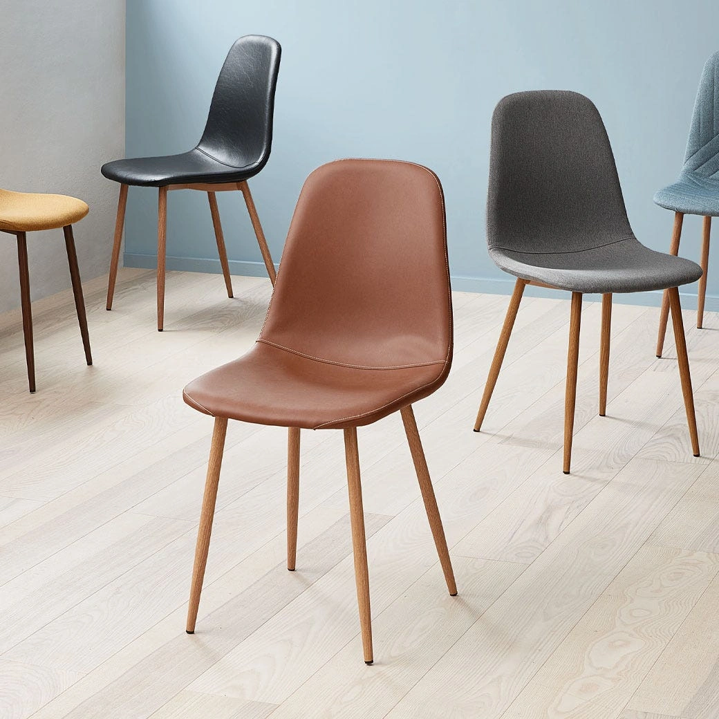 15Looking to add some stylish seating to your dining area? I'm selling 2 brown faux leather dining chairs. They're in great shape and would look fantastic around any table! The faux leather is easy to clean and the wooden legs provide a sturdy base.