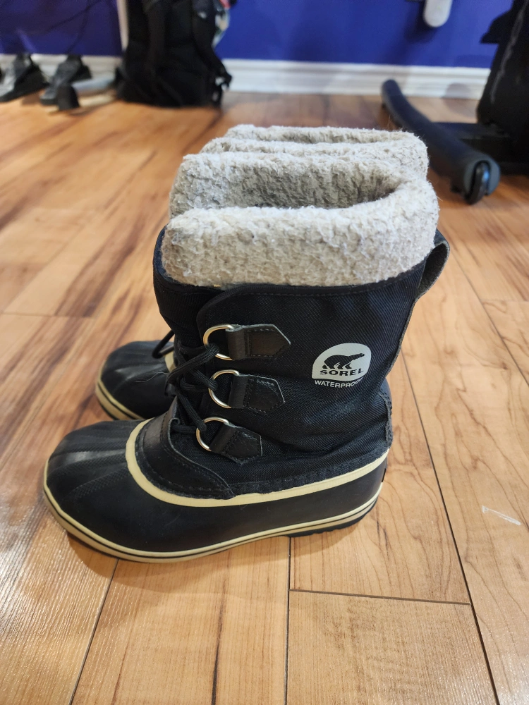 Selling a pair of Sorel Youth Flurry winter boots in size 3. These boots are perfect for keeping your little one's feet warm and dry during the cold Canadian winters. They are waterproof and have a cozy faux fur lining to keep the warmth in. Great for playing in the snow or just walking to school!