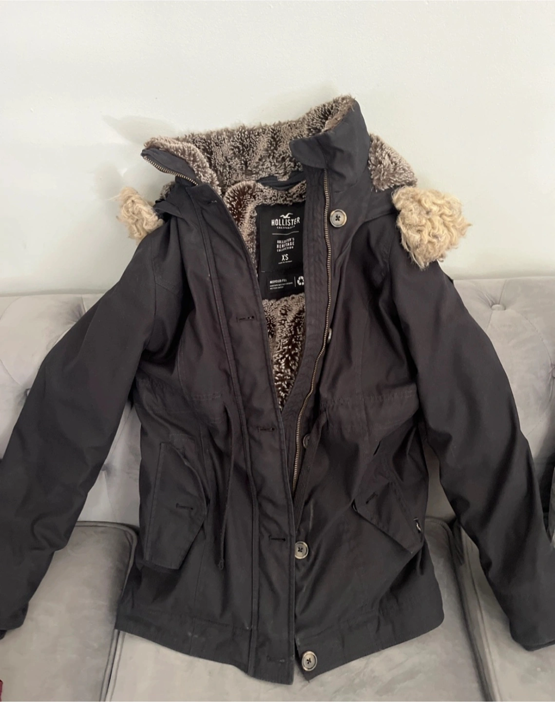 10Selling a Hollister Heritage Collection winter coat in size XS fits like a size small too. It's in great condition and perfect for the cold weather! The coat features a faux fur lining and hood trim to keep you extra cozy. It's a stylish and practical choice for the winter season