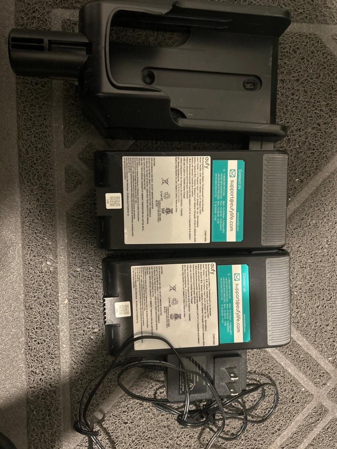 Selling two Eufy robot vacuum batteries along with the charging station and power adapter. These are compatible with the YL50241A-T300080 series charger. Each battery has a capacity of 2500mAh and operates at DC25.2V. Perfect as spares or replacements!