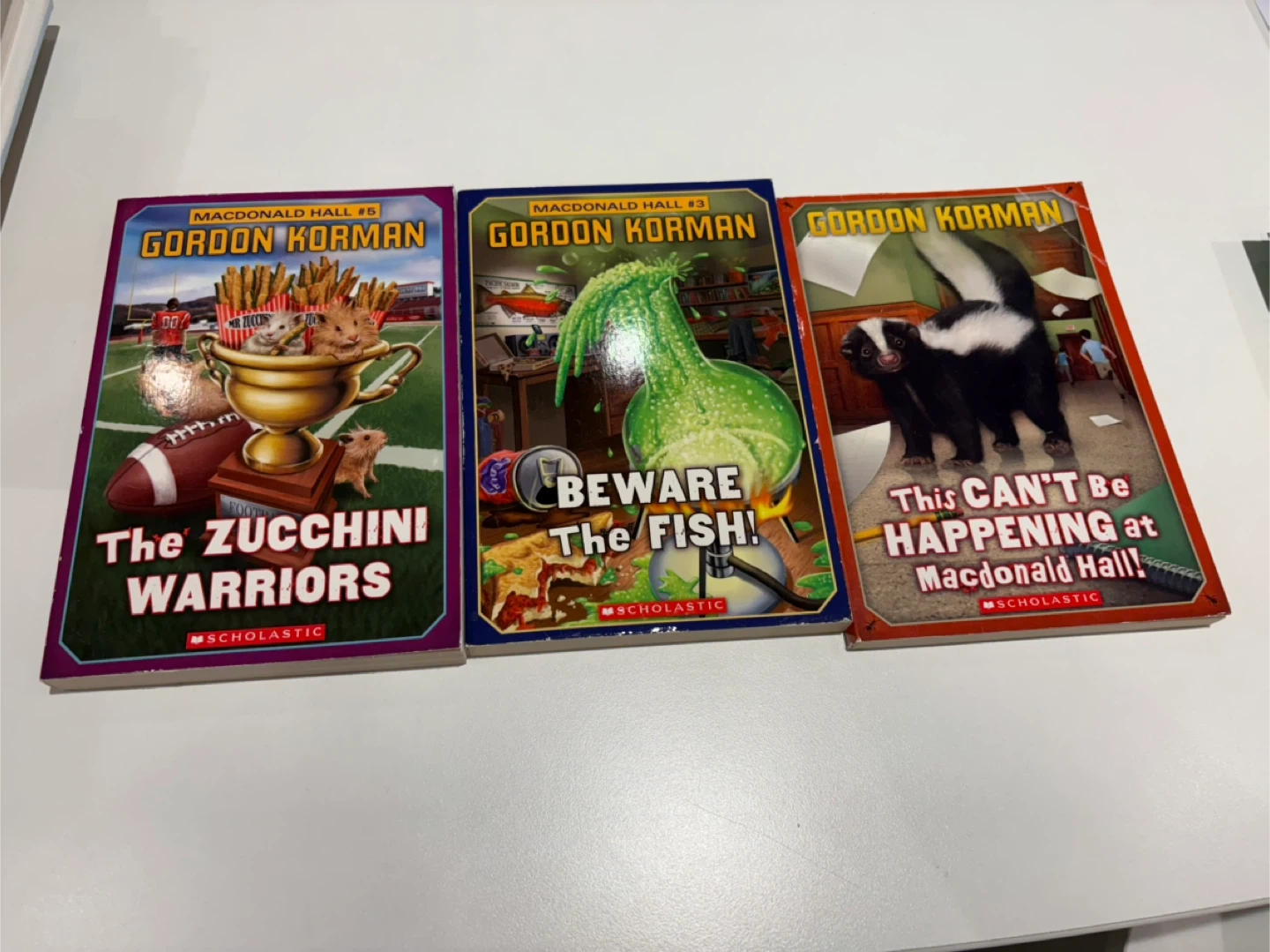 This Can’t Be Happening at Macdonald Hall (Book 1, 1978) • The very first Macdonald Hall book. • Introduces Bruno and Boots, two mischievous boys at a Canadian boarding school. • Originally published by Scholastic’s Apple Paperbacks, your copy is a later reprint with modernized covers. 2. Beware the Fish! (Book 3, 1980) • Bruno and Boots set out to save Macdonald Hall’s reputation when the school faces closure. • Famous for its wild comedy and over-the-top antics. 3. The Zucchini Warriors (Book 5, 1988) • The school gets dragged into a football competition thanks to a local zucchini farmer’s sponsorship, leading to chaos.
