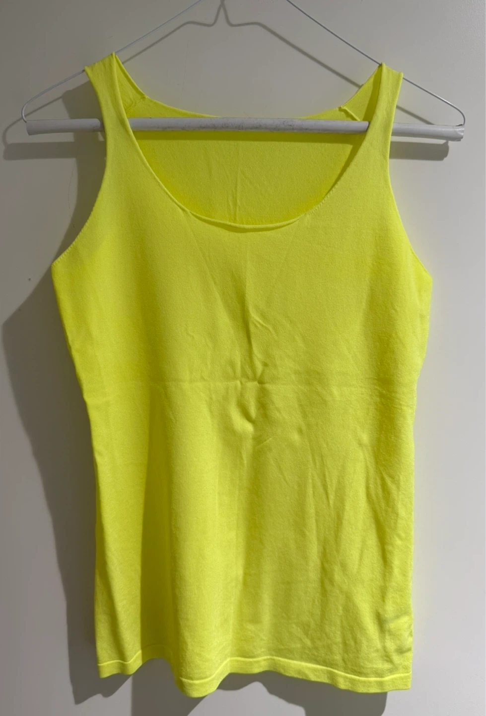 Selling a yellow tank top by Girdear. It is crafted from a comfortable blend of 76% viscose and 24% nylon, offering a soft feel with a bit of stretch.