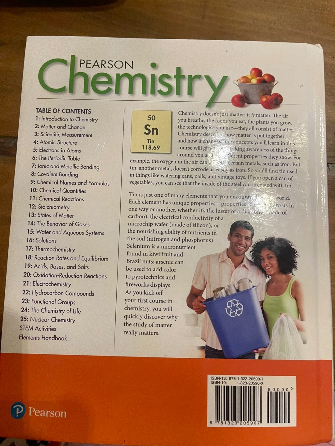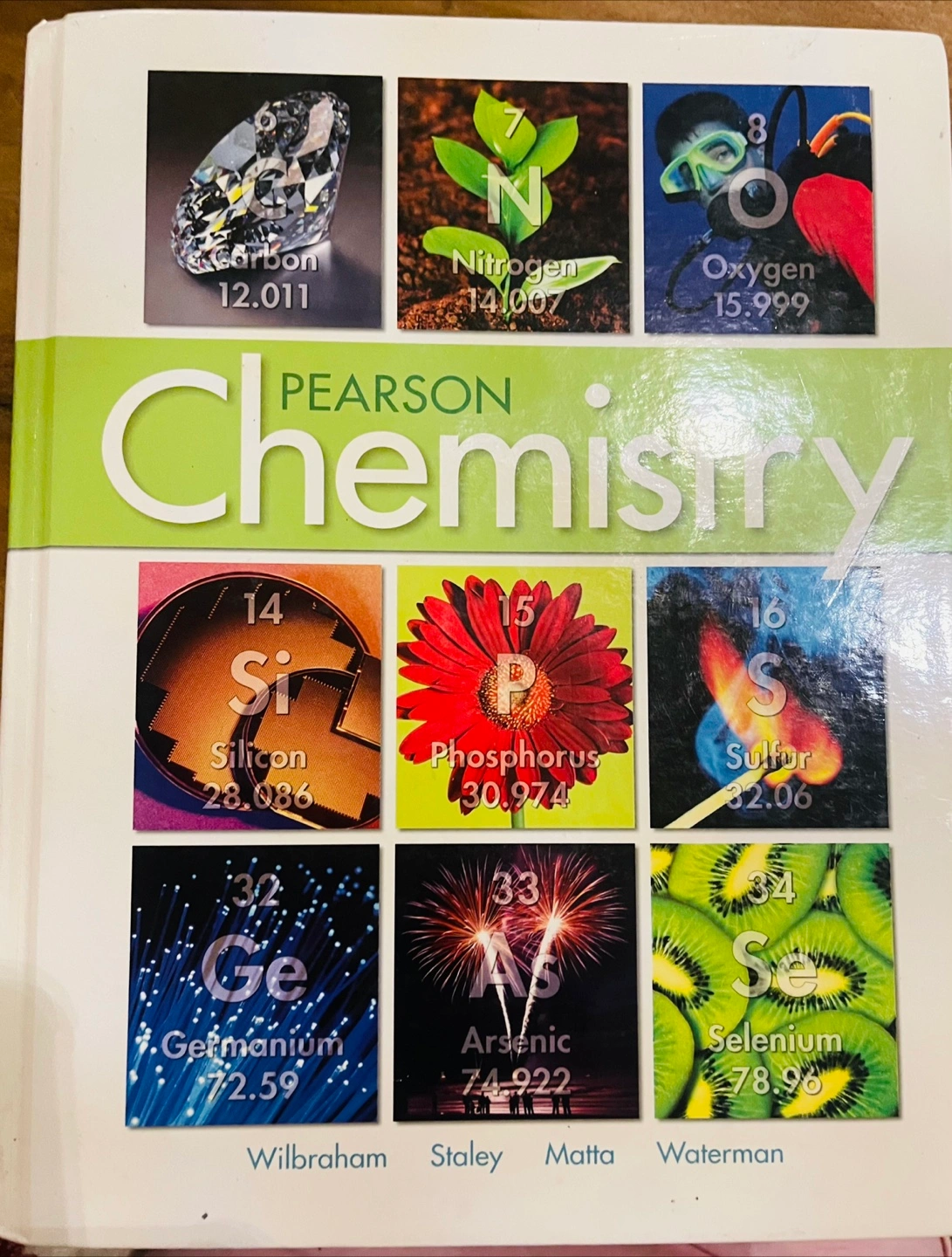Selling a used Pearson Chemistry textbook. It covers a wide range of topics, from basic concepts to more advanced chemical reactions. Perfect for high school or introductory college chemistry courses! It includes chapters on matter, atomic structure, chemical reactions, and more