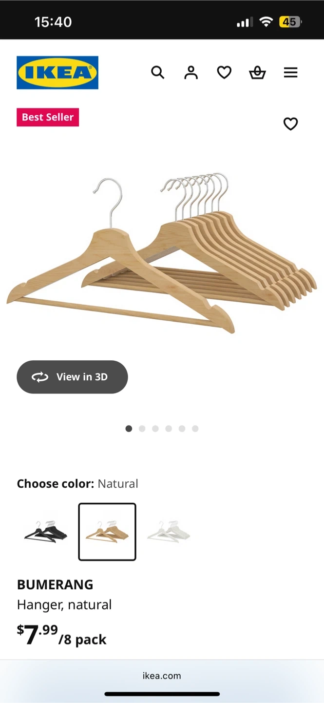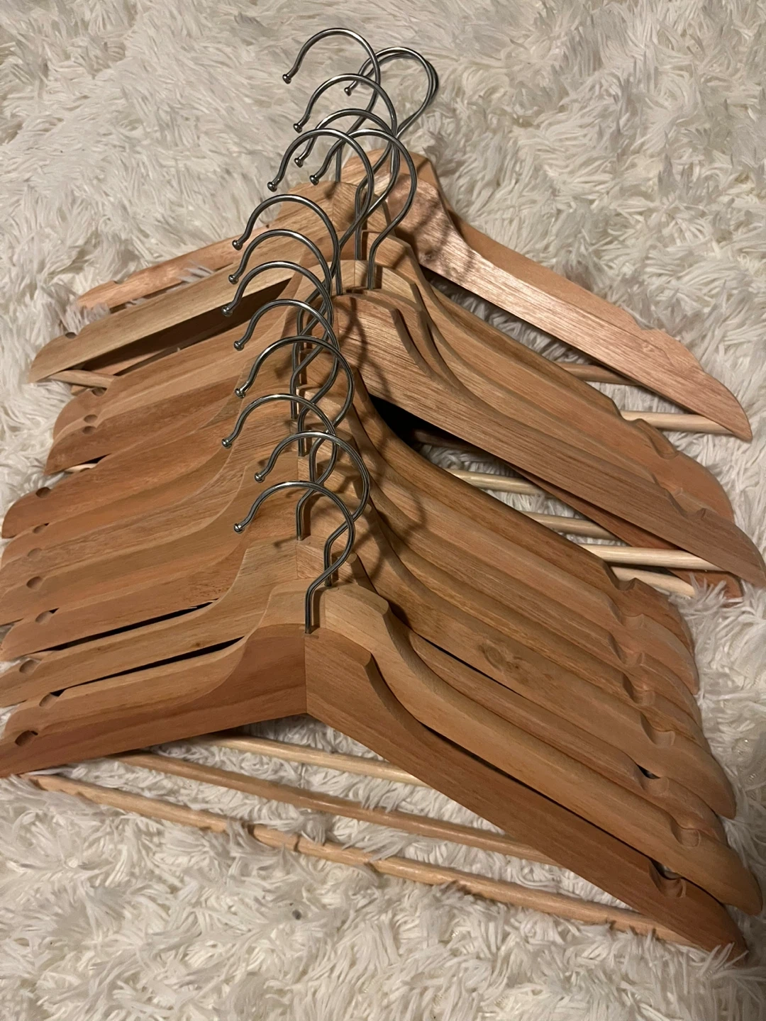 Selling a set of IKEA BUMERANG hangers in the natural wood finish! These are great for keeping your clothes organized and looking neat. They come in a pack of 16. Originally priced at $7.99 for pack of 8.