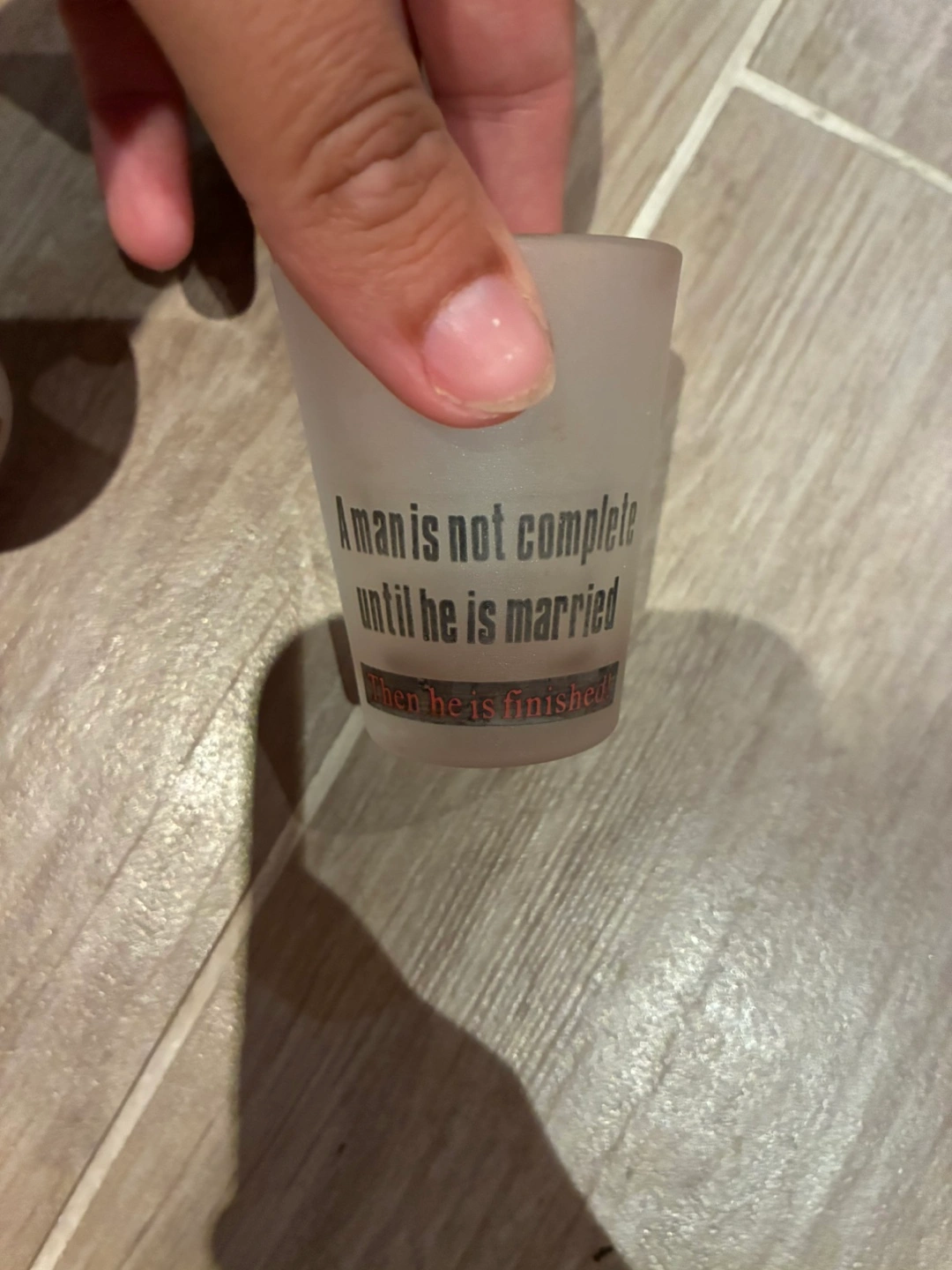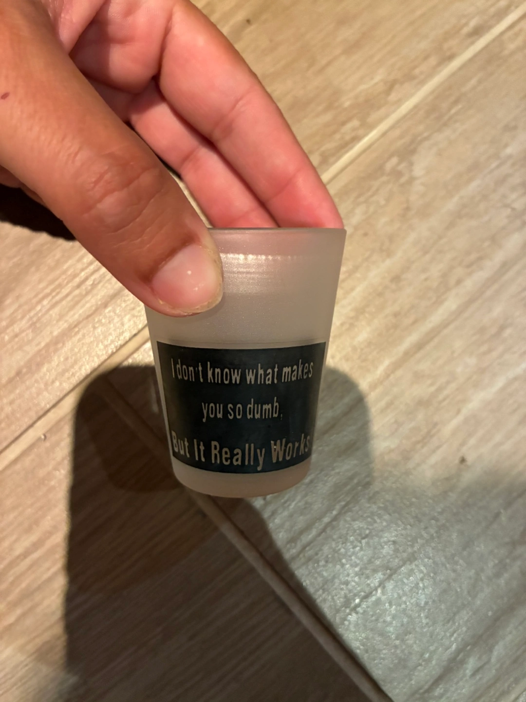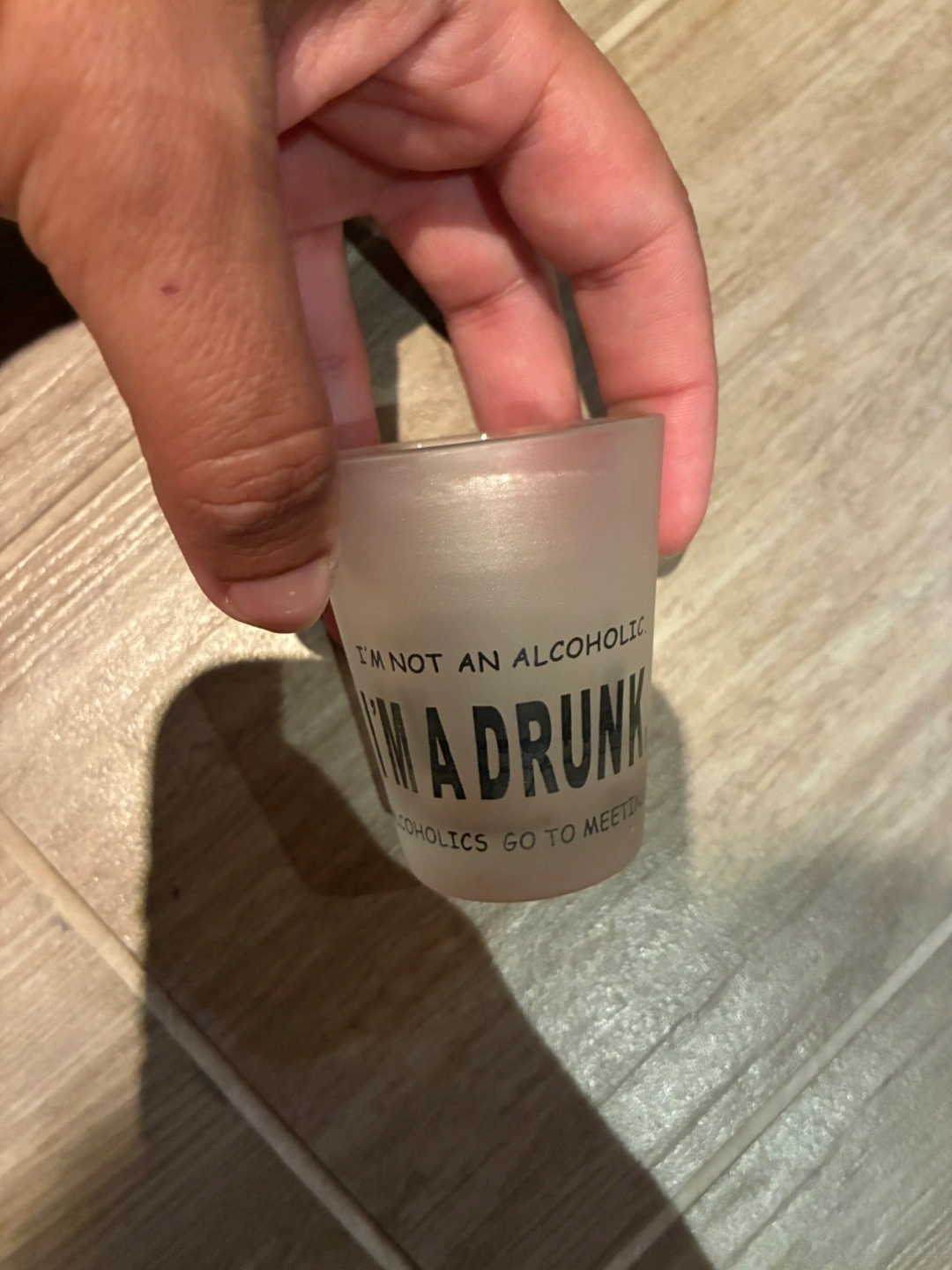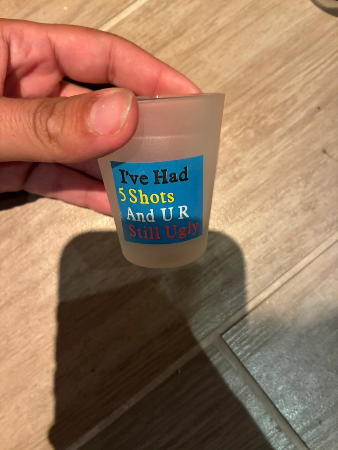 Selling a set of shot glasses with various funny sayings printed on them. They're perfect for parties or adding a bit of humour to your home bar