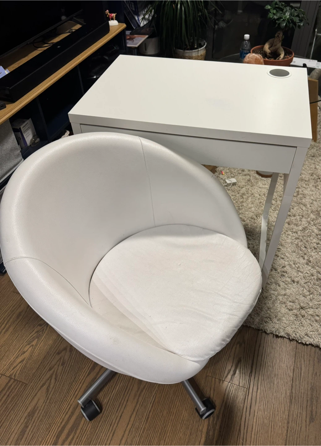 1 / 31 / 3Buy & SellWhite Desk and Chair SetWhite Desk and Chair Set$50Selling a simple white desk and chair set! The desk has a clean, minimalist design minor scratches due to usageConditionGoodWHERE TO MEETCheck LocationView MapSELLERverifiedDiegoYorkville1033 reviews5 chats·1 favorites·71 viewsSEND CHAT TO SELLERHi Diego! I’m interested in your listing.Hi Diego! I’m interested in your listing.Get the Karrot app to chatSign In to chat