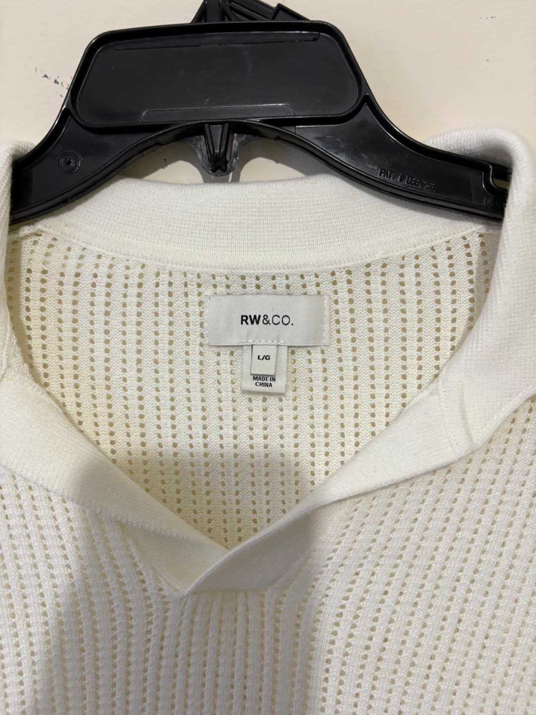Selling a RW&CO. knit polo shirt in size L/G. It's a stylish and comfortable piece, perfect for casual wear. The material is lightweight and breathable, making it ideal for warmer weather. The polo features a classic design with a modern twist, and it's in great condition!