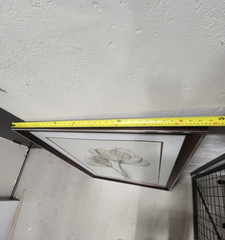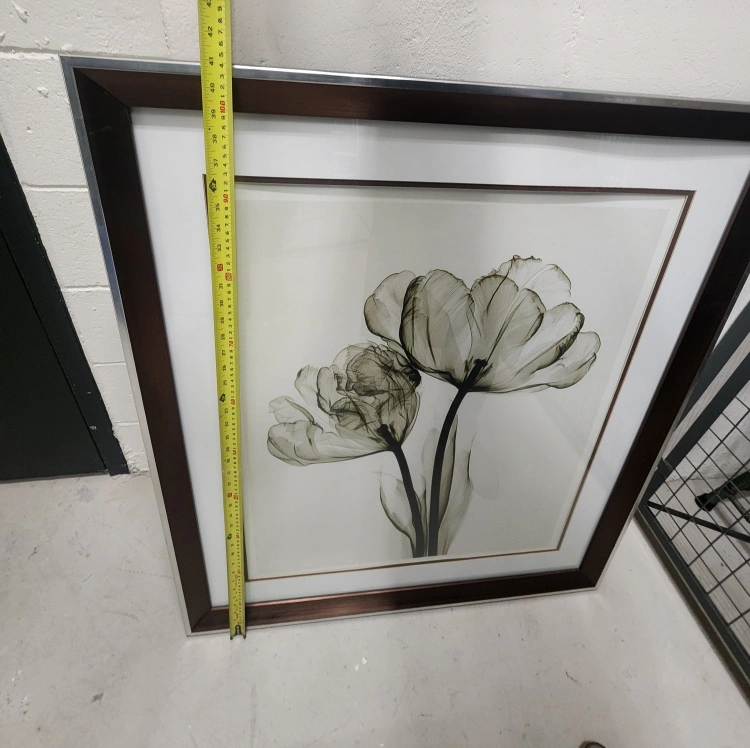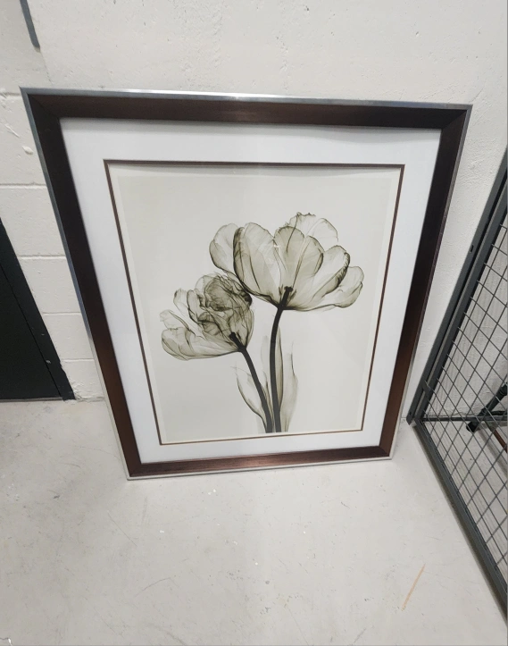 Selling a framed piece of wall art featuring a floral design. It measures approximately 35 inches by 43 inches. It's in great shape and ready to add a touch of elegance to your home decor