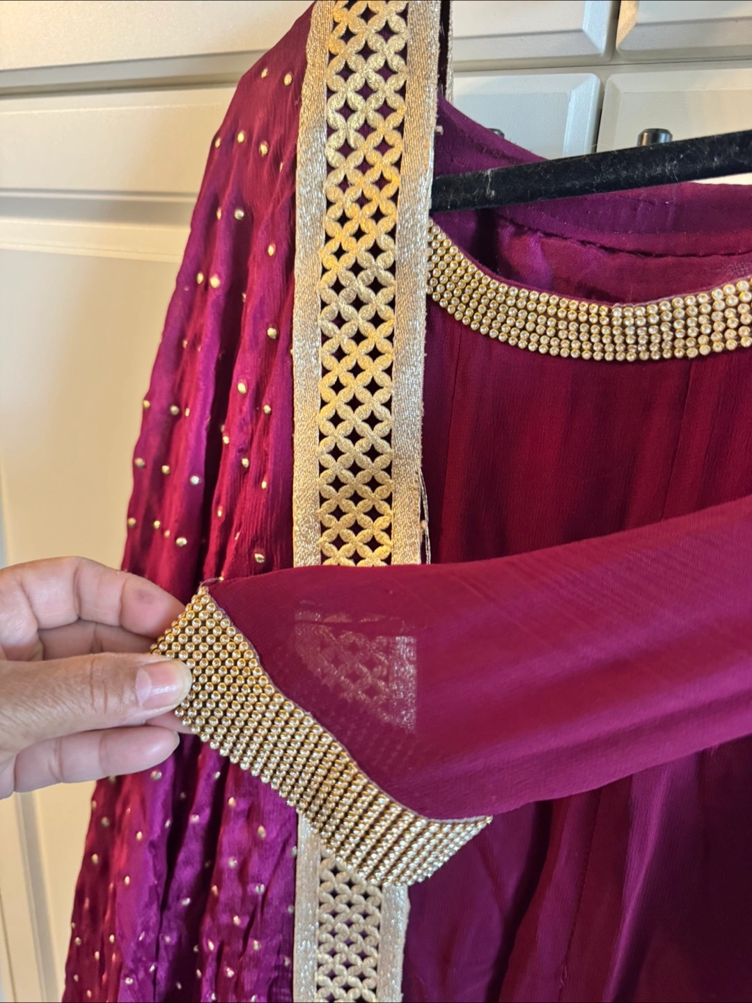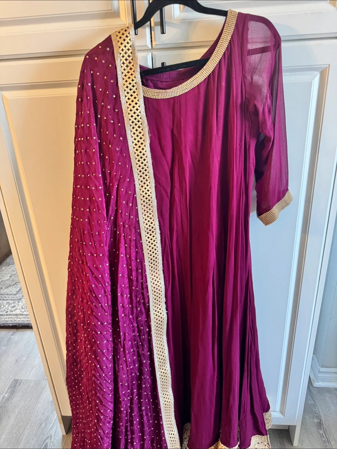 Beautiful Anarkali party wear! These traditional outfits are perfect for special occasions. Large flare in a beautiful wine colour. A lovely addition to any wardrobe!