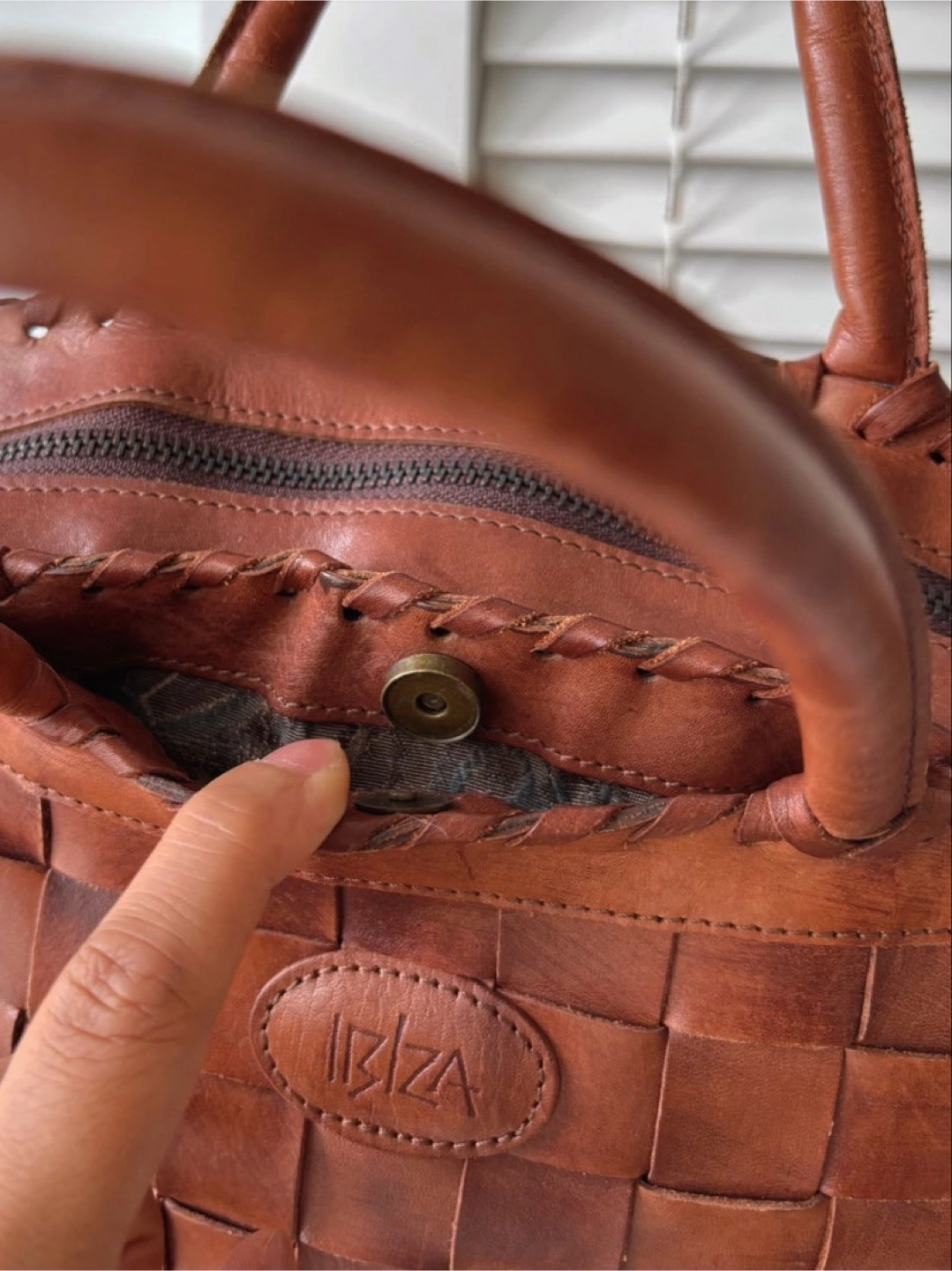 β’ Woven genuine leather exterior with IBIZA logo patch