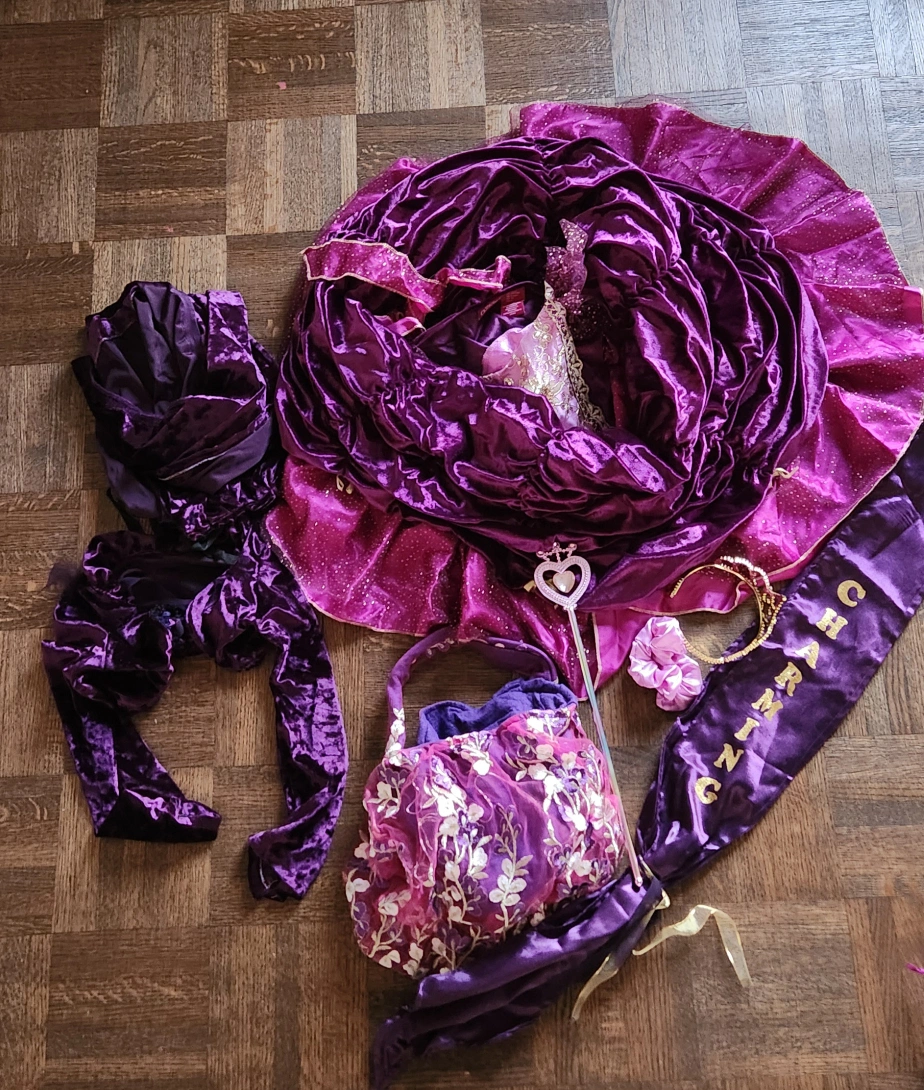 Selling a complete purple princess costume set! Includes the dress, crown, wand, light up bag and lightup scrunchies Pickup near Bloor and keele Smoke free pet free home Cross posted