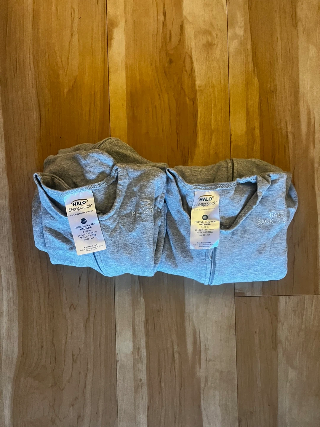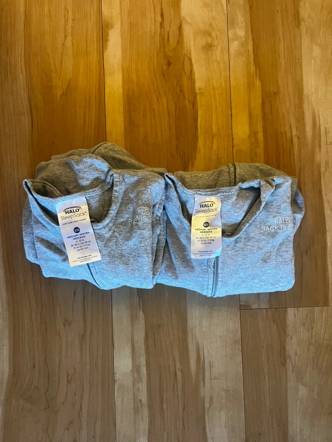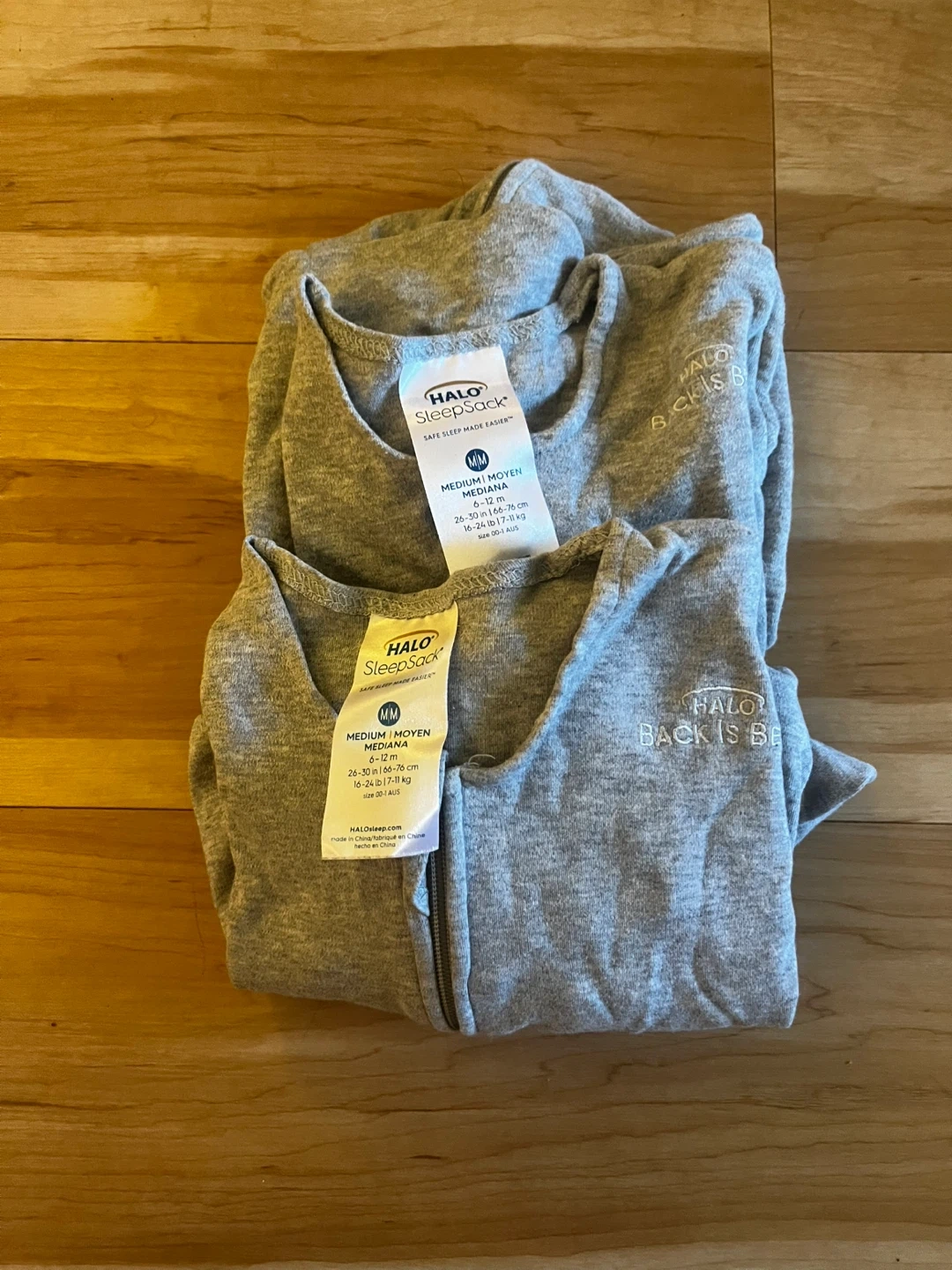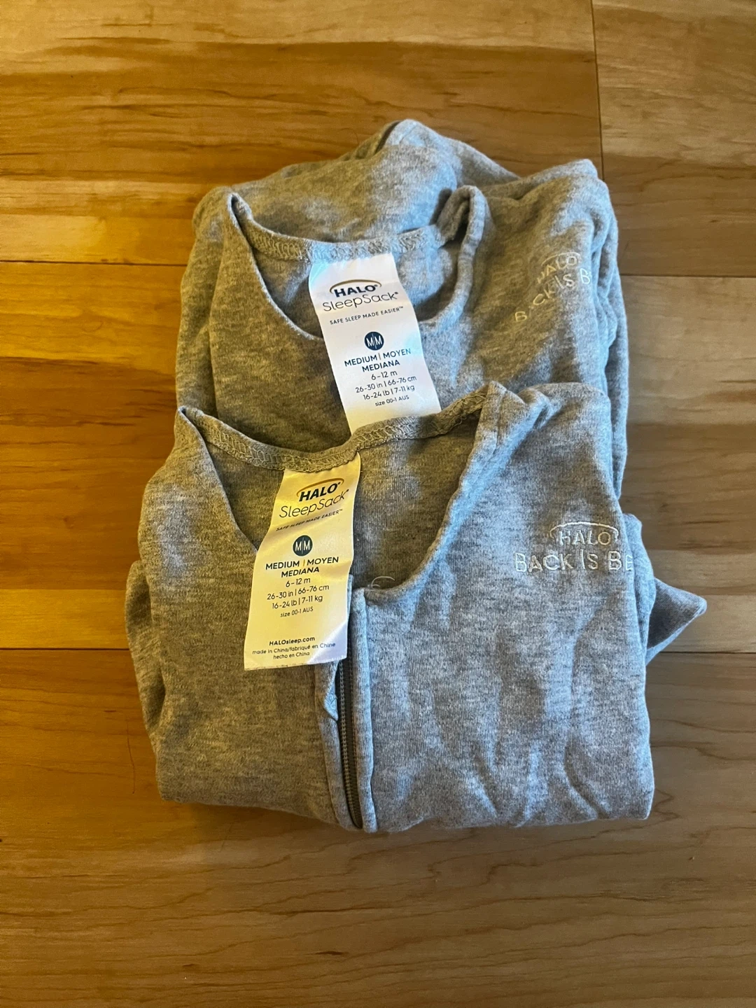 Selling two Halo SleepSacks in size medium! They're in great shape and ready for a new home. - Size: Medium (M) - Fits babies 15-24 lbs (6.8-11 kg) and 26-30 inches (66-76 cm)
