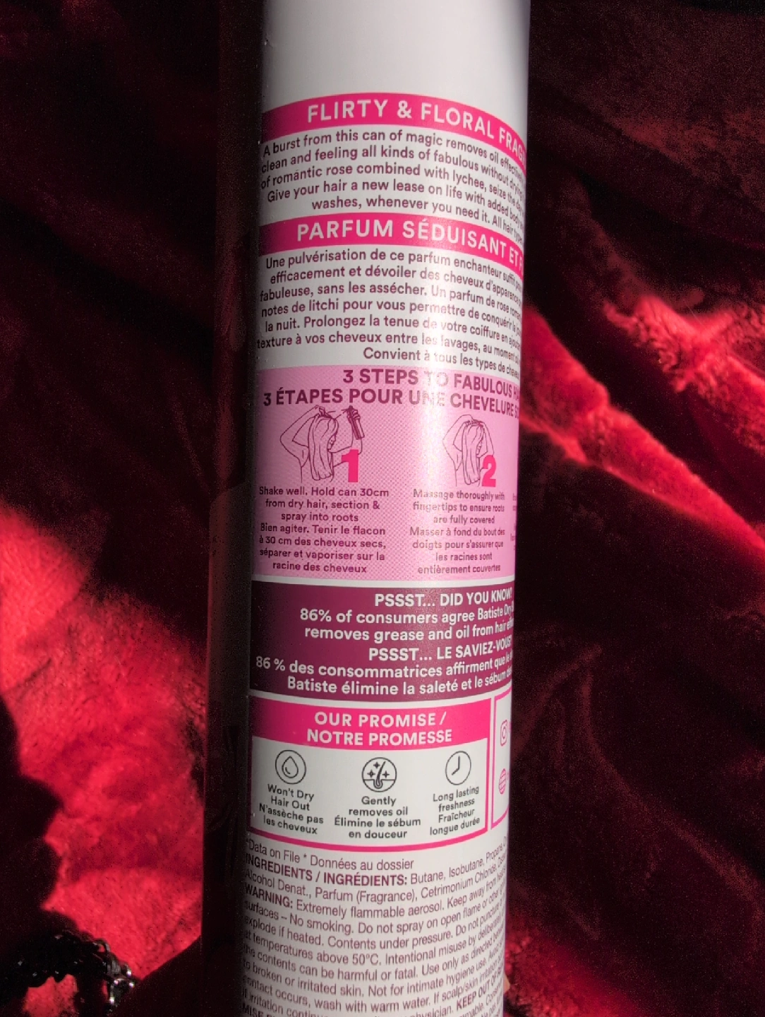 Batiste Instant Hair Refresh Dry Shampoo in Blush scent. This is a 350ml can of dry shampoo. Originally bought for $12.99. It refreshes hair without drying it out and removes grease and oil from hair. I tried it once and didn't like it, it's pretty much a full can.