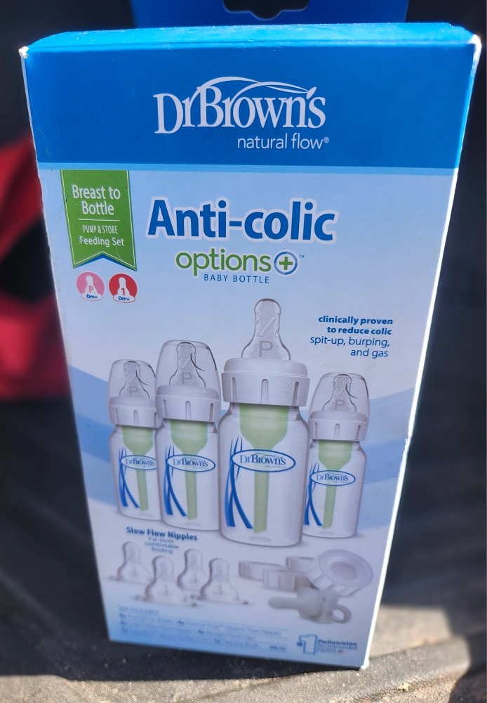 Selling a brand new Dr. Brown's Natural Flow Anti-Colic Options+ Baby Bottle Feeding Set! This set is designed to reduce colic, spit-up, burping, and gas. It includes slow flow nipples for comfortable feeding. The bottle is designed to nourish through all of baby's feeding stages and is recyclable