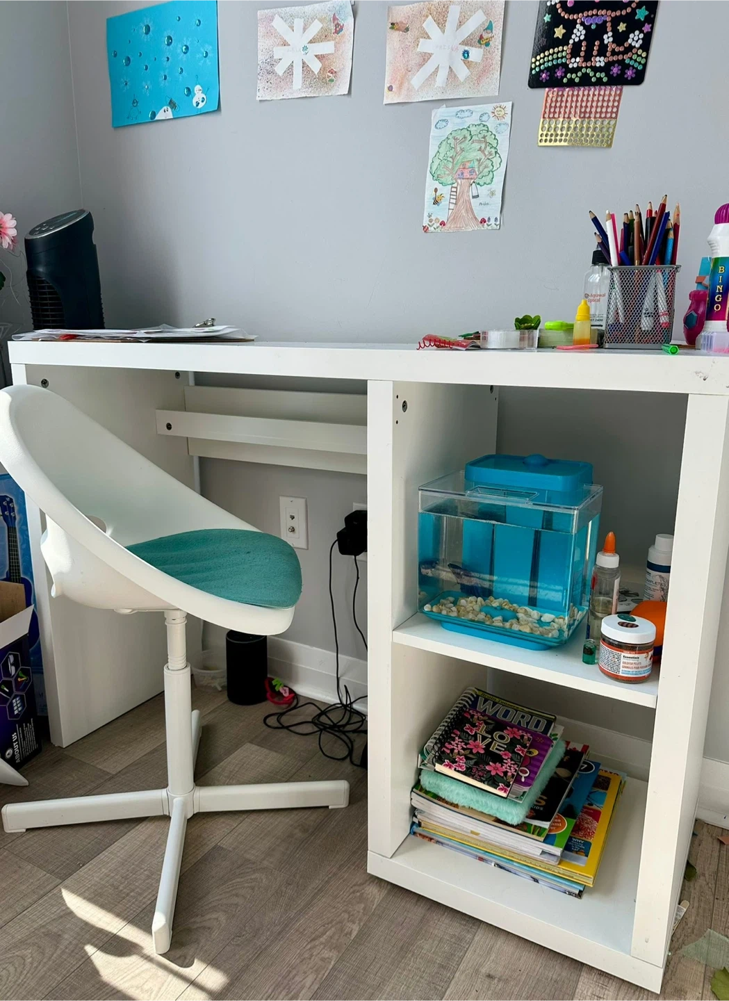Selling a white IKEA desk and Chair!! It's in great condition and ready for a new home.