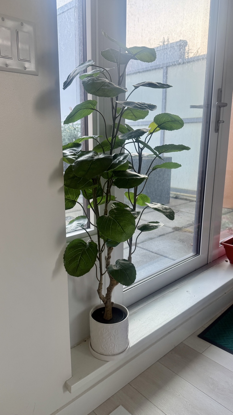 Selling two faux aralia plants in great condition! It's perfect for adding a touch of greenery to any room. It comes in a black 5”pot, but I've also shown it in a white pot to give you an idea of how it looks with different decor.