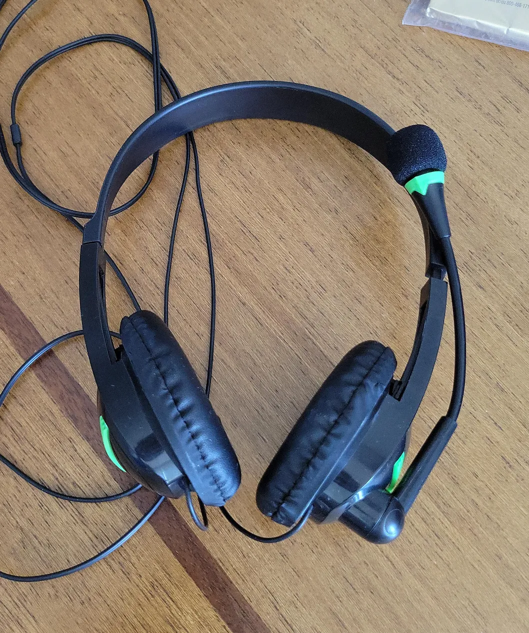 Selling a black gaming headset! It comes with a microphone, perfect for online gaming or chatting with friends. It's in great condition and ready for a new home! The headset is lightweight and comfortable for long gaming sessions