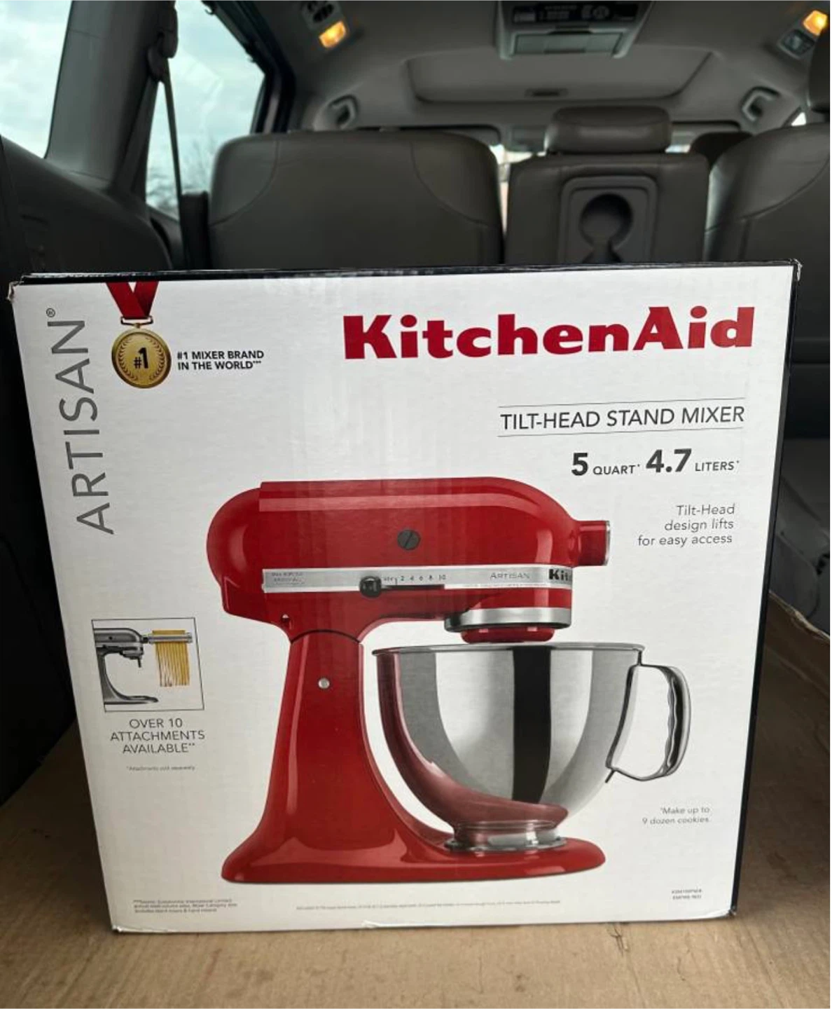 I'm selling a brand new KitchenAid Artisan Tilt-Head Stand Mixer. It's a 5-quart mixer in excellent condition. The box shows that it is the #1 mixer brand in the world! It's a tilt-head design for easy access from 9 to up cookies and blends your fav cake.